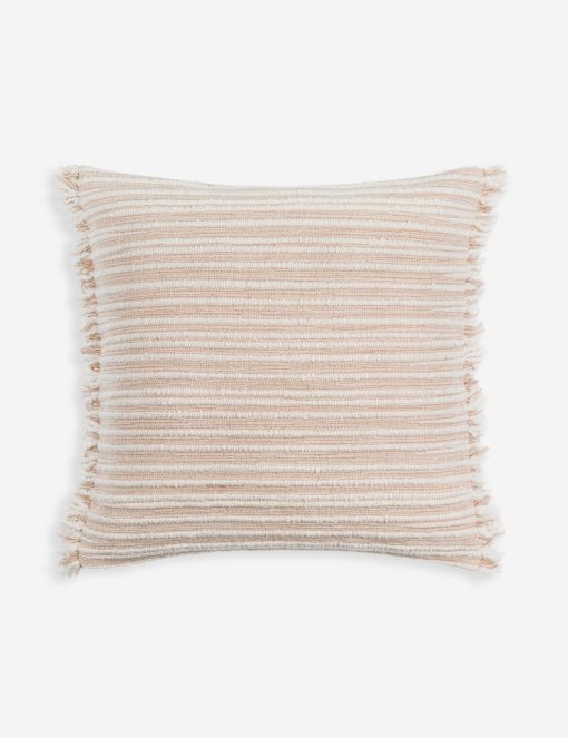 The Radha pillow styles sophistication with flair. Its delicate palette and soft cotton touch are ready to elevate an everyday space with the perfect touch of comfort. Raised tripes and thick fringe add to the tactile charm.