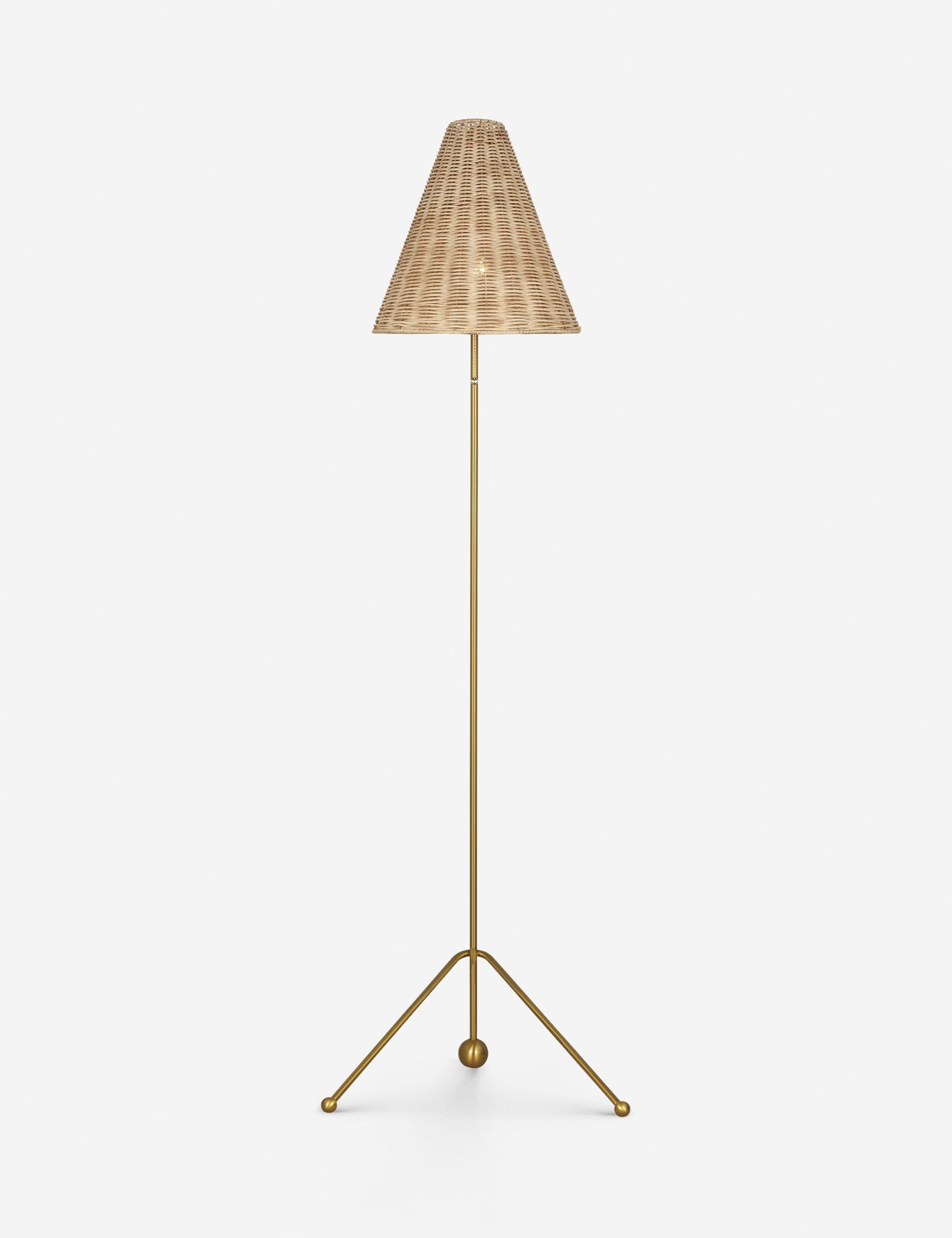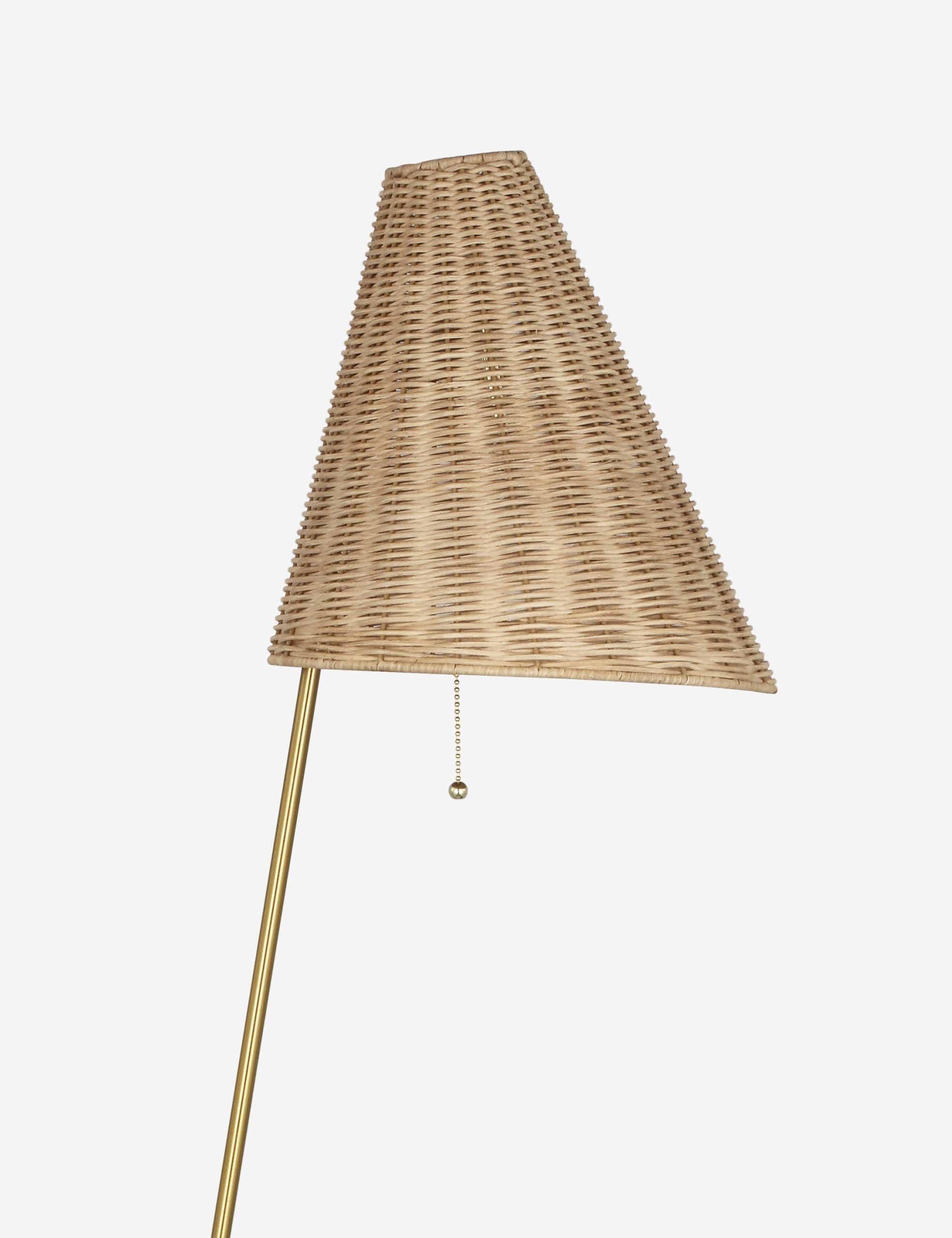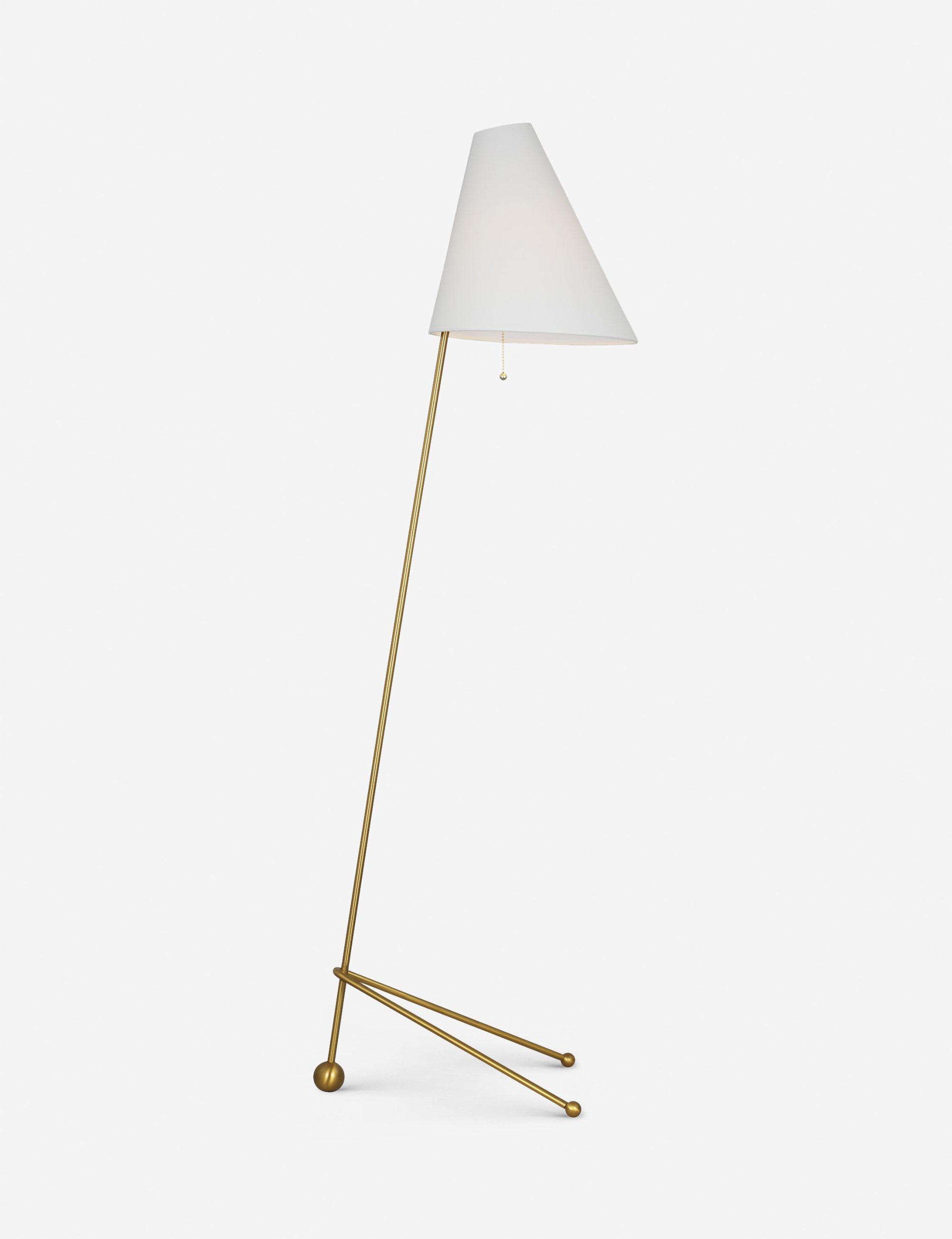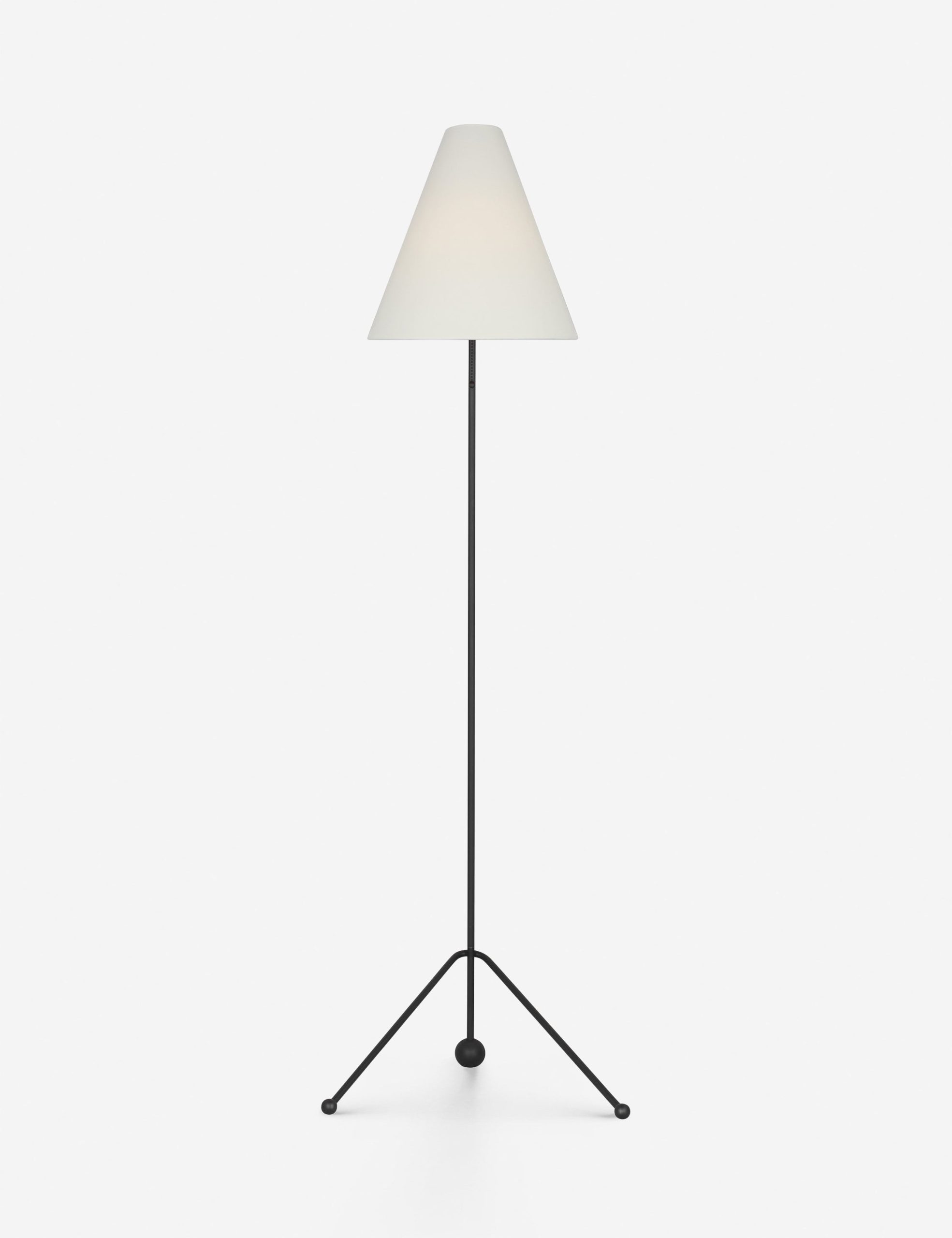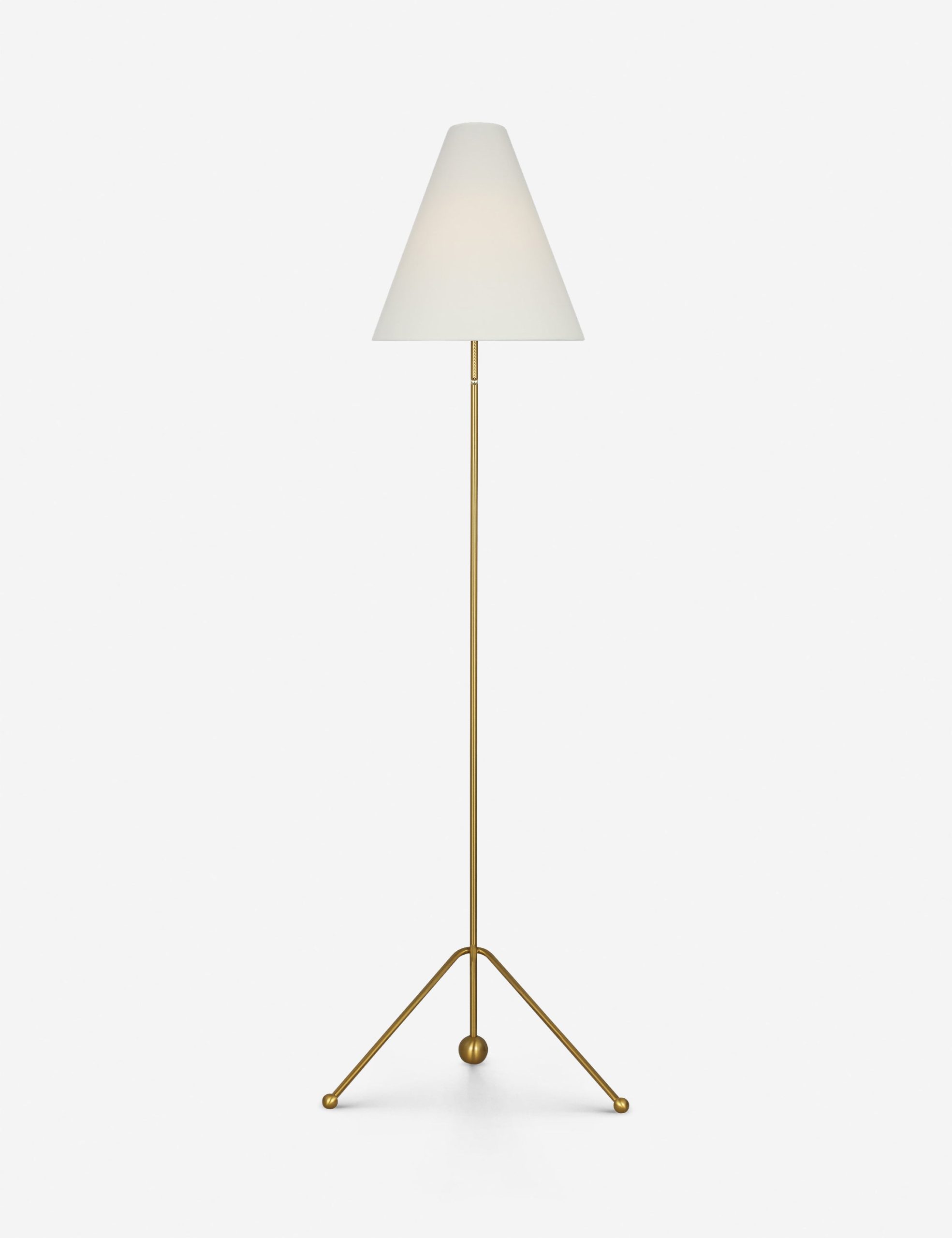 Appling sits with a spare, stylish silhouette poised for artful impact. The lamp’s tripod legs prop the metal stem at a playful angle to hold its shade askew, offering a good dose of light with a touch of natural texture. We love this versatile floor lamp for layered lighting design in a bright and airy space.