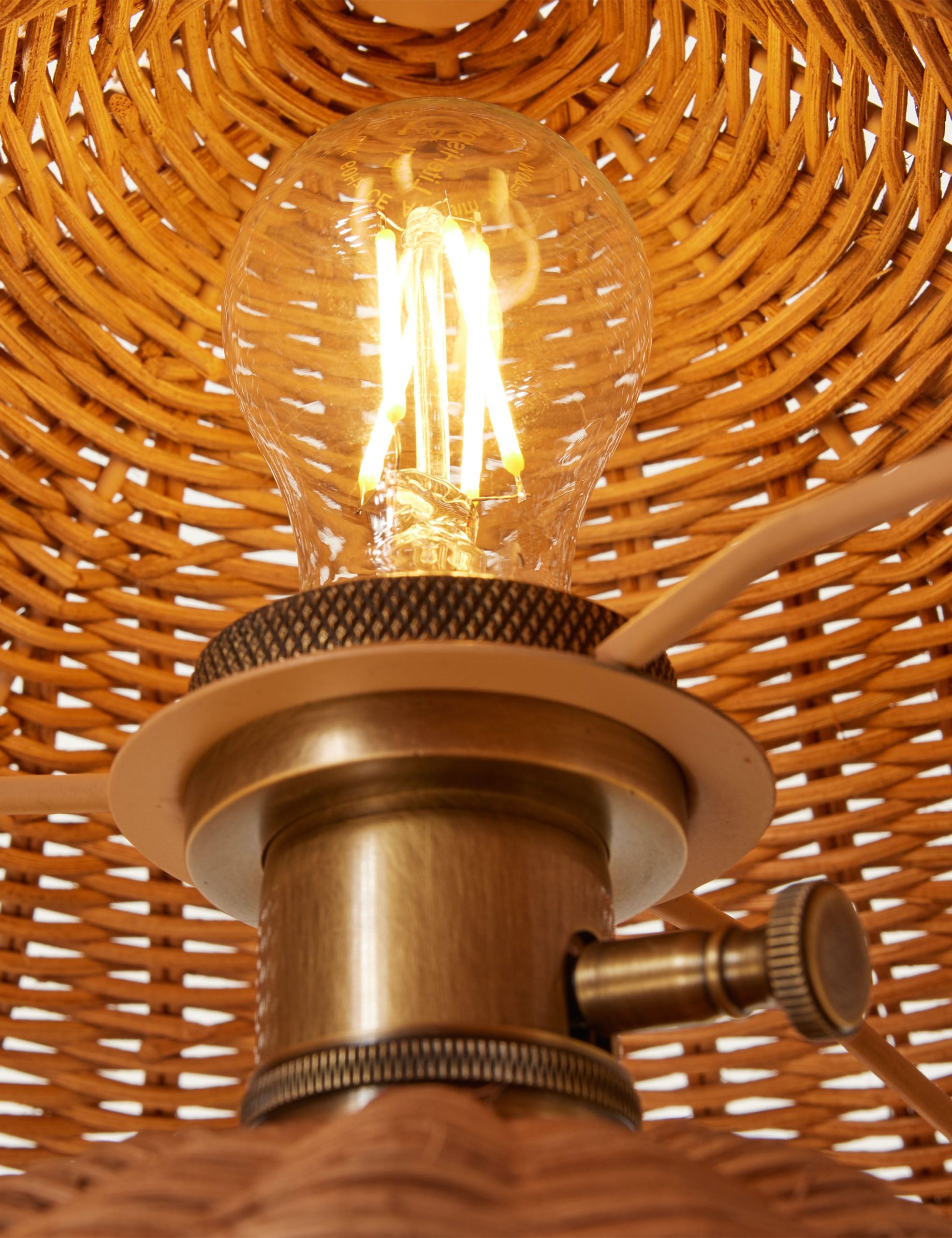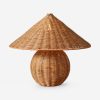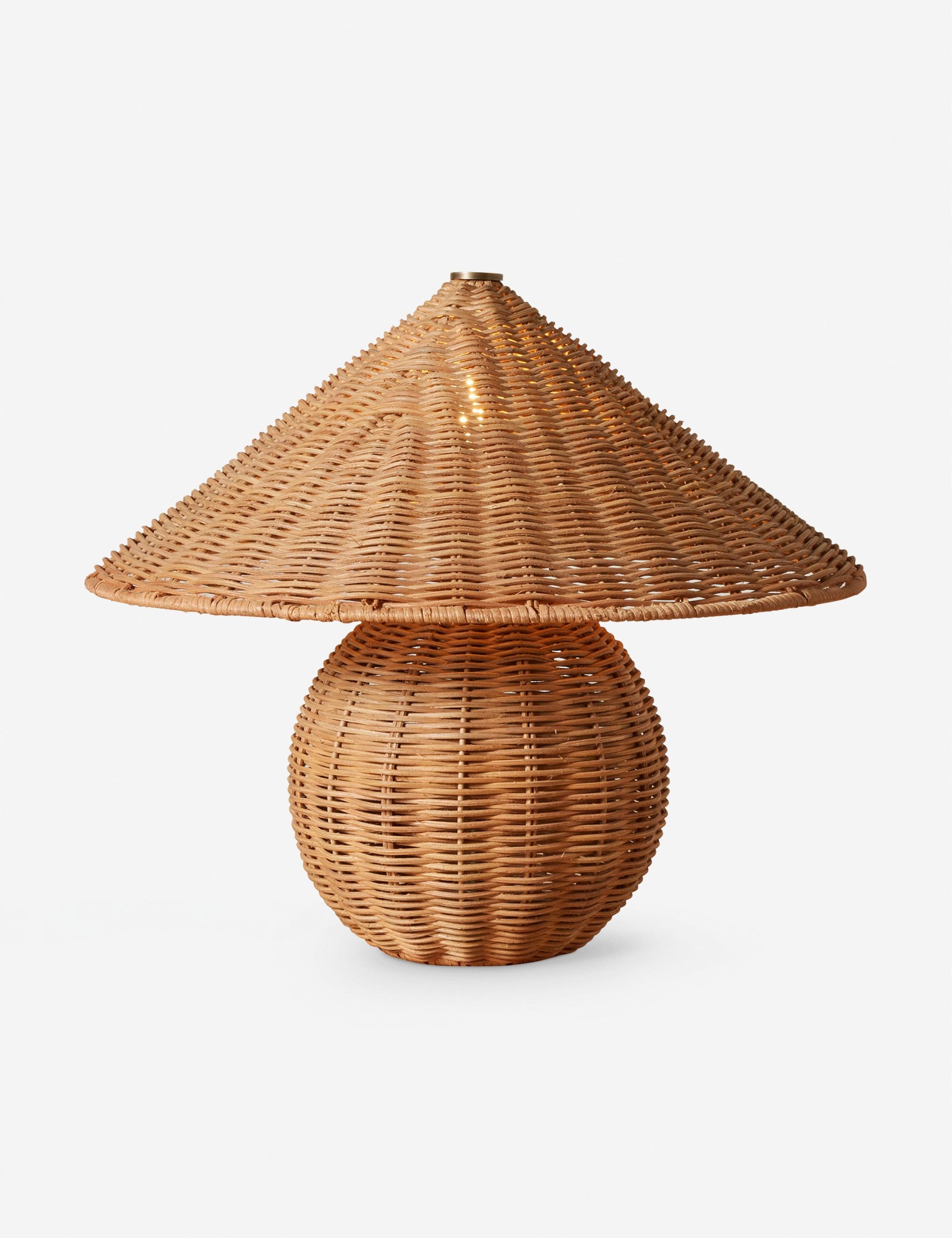 Bold shape meets natural texture in this chic lamp. Handwoven from sustainably harvested rattan, its monochrome silhouette layers organic warmth with an ambient glow. A refined table lamp for a thoughtfully collected space.