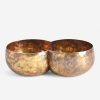 This decorative double bowl evokes vintage allure atop your console, dresser, or coffee table. The hammered brass is oxidized to give each piece a unique burnt luster. Use it as a catchall for keys, change, or rings.