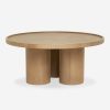 With its pedestal base, subtly recessed tabletop, and ash veneer, this Delta Round Coffee Table marries pared-down design with elevated details. The rich woodgrain highlights the natural finish and three clustered columns complement the slim-lined round top. We love curating this wood coffee table with sculptural and tactile accents.