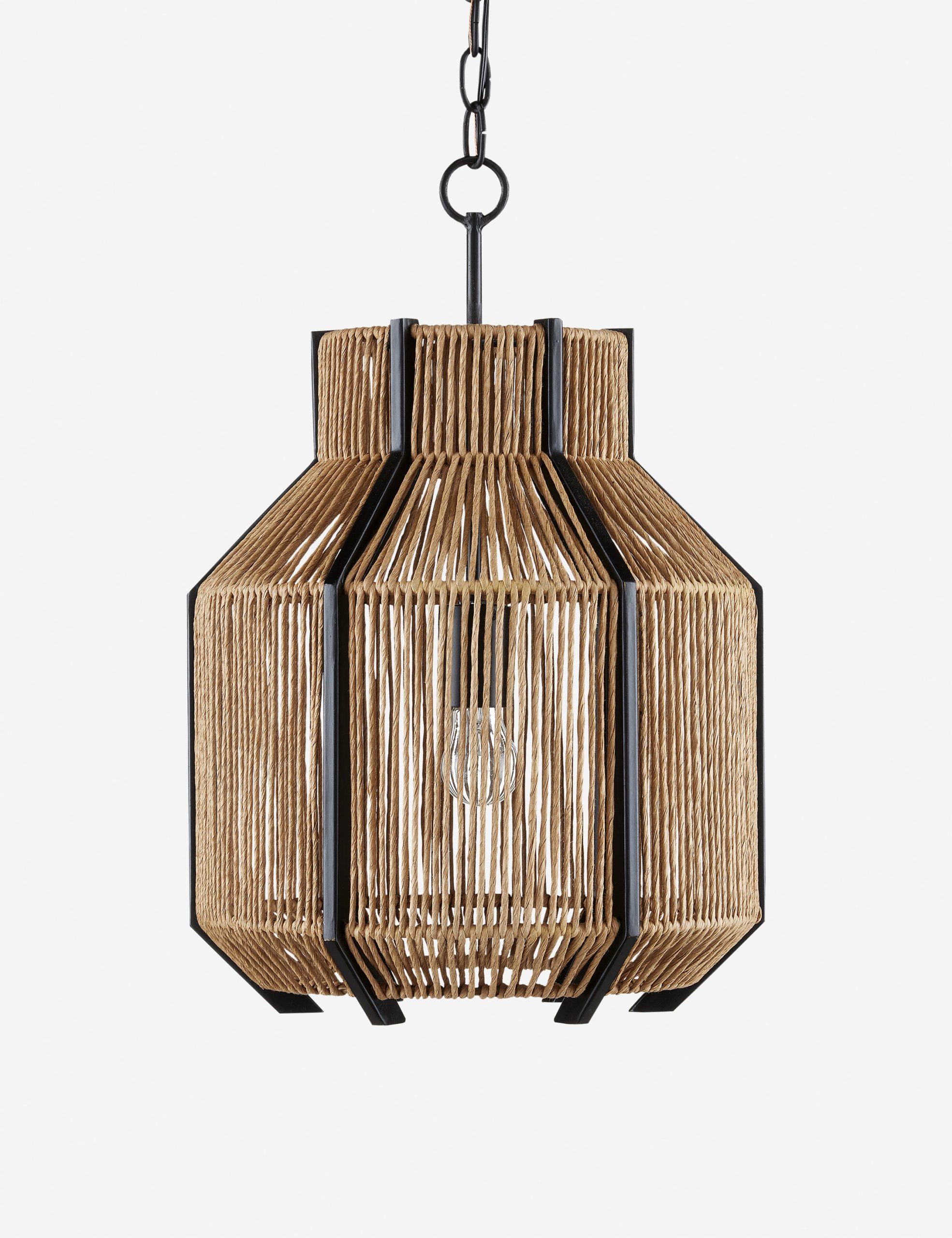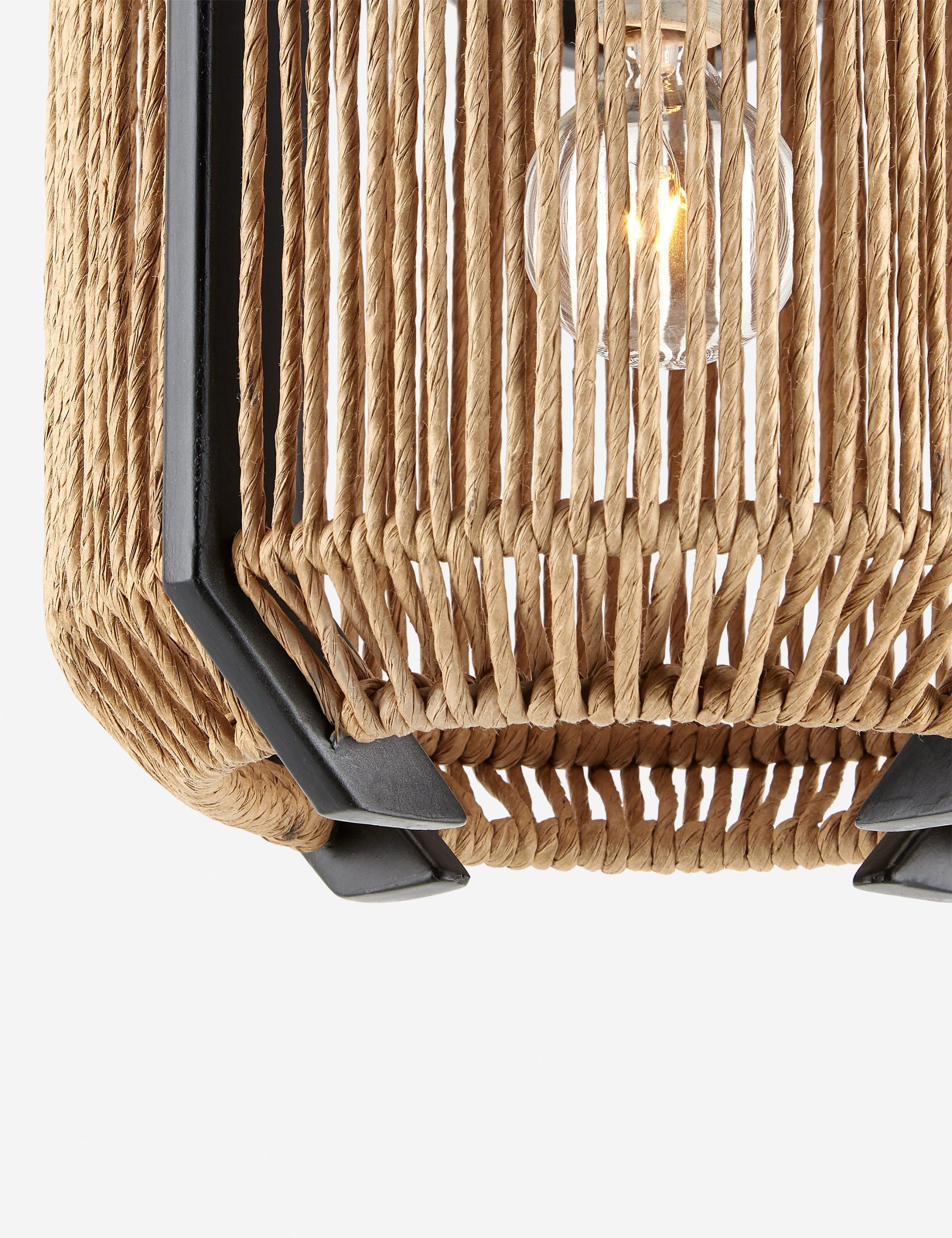 Artisan textures blend with modern elements in this eye-catching pendant light. The warmth of the twine brings a grounding touch to the sleek, wrought iron frame elevating both materials in an angular design. We love this pendant light for a grounding touch that can blend seamlessly into a modern space.