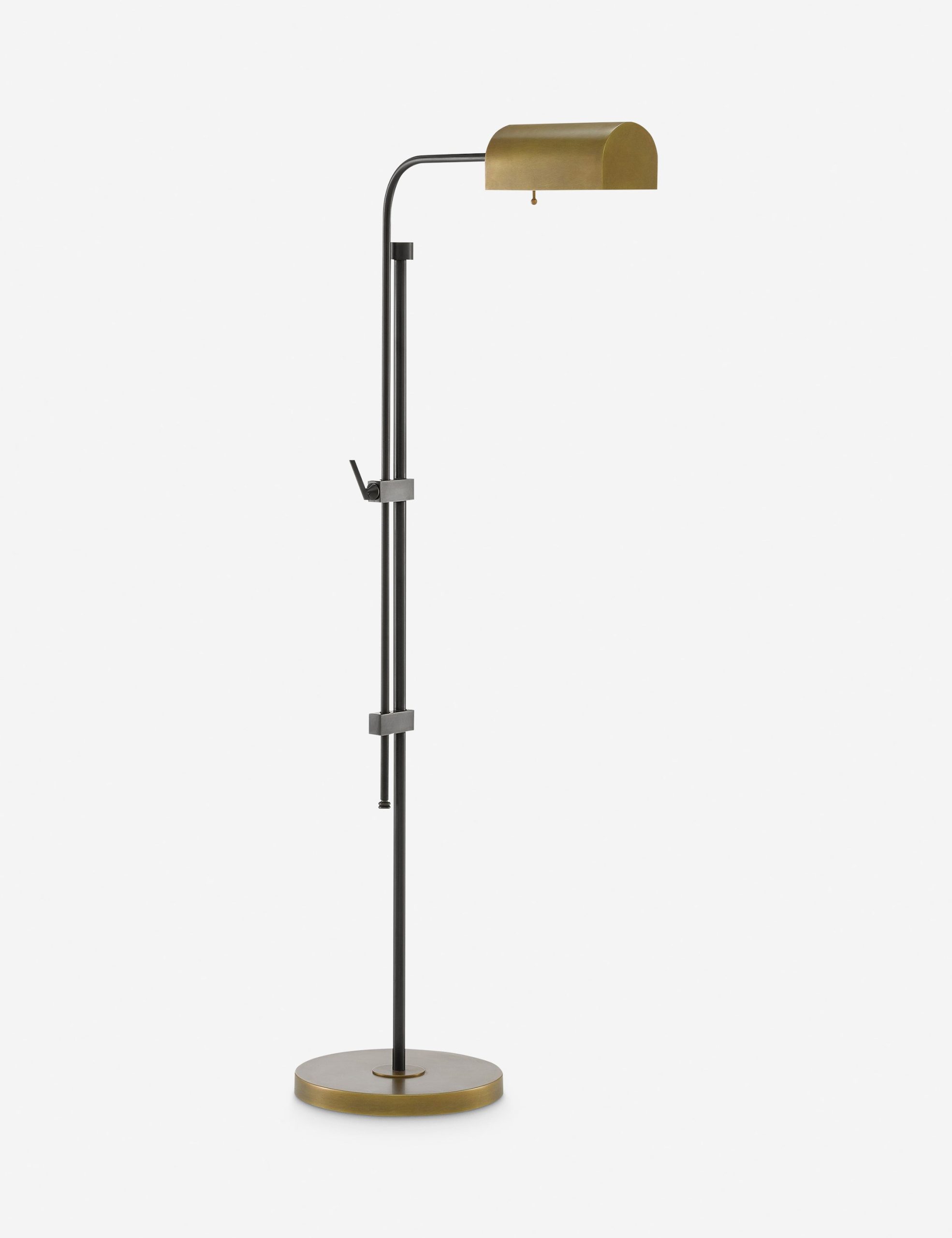 Industrial meets chic in the Henderson floor lamp. Featuring an adjustable stem topped with a semicylinder shade, this floor lamp is a great way to add task lighting to a home office or reading nook. Antique finishes and a throwback pull chain complete the look with a touch of vintage charm.