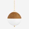 Woven rattan detailing takes a timeless globe pendant design to a new level. Suspended from a brass-finished chain, this hanging light is a show-stopping piece that evolves the look of your bedroom, living space, entry, or breakfast nook.