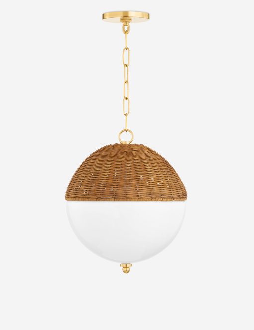 Woven rattan detailing takes a timeless globe pendant design to a new level. Suspended from a brass-finished chain, this hanging light is a show-stopping piece that evolves the look of your bedroom, living space, entry, or breakfast nook.