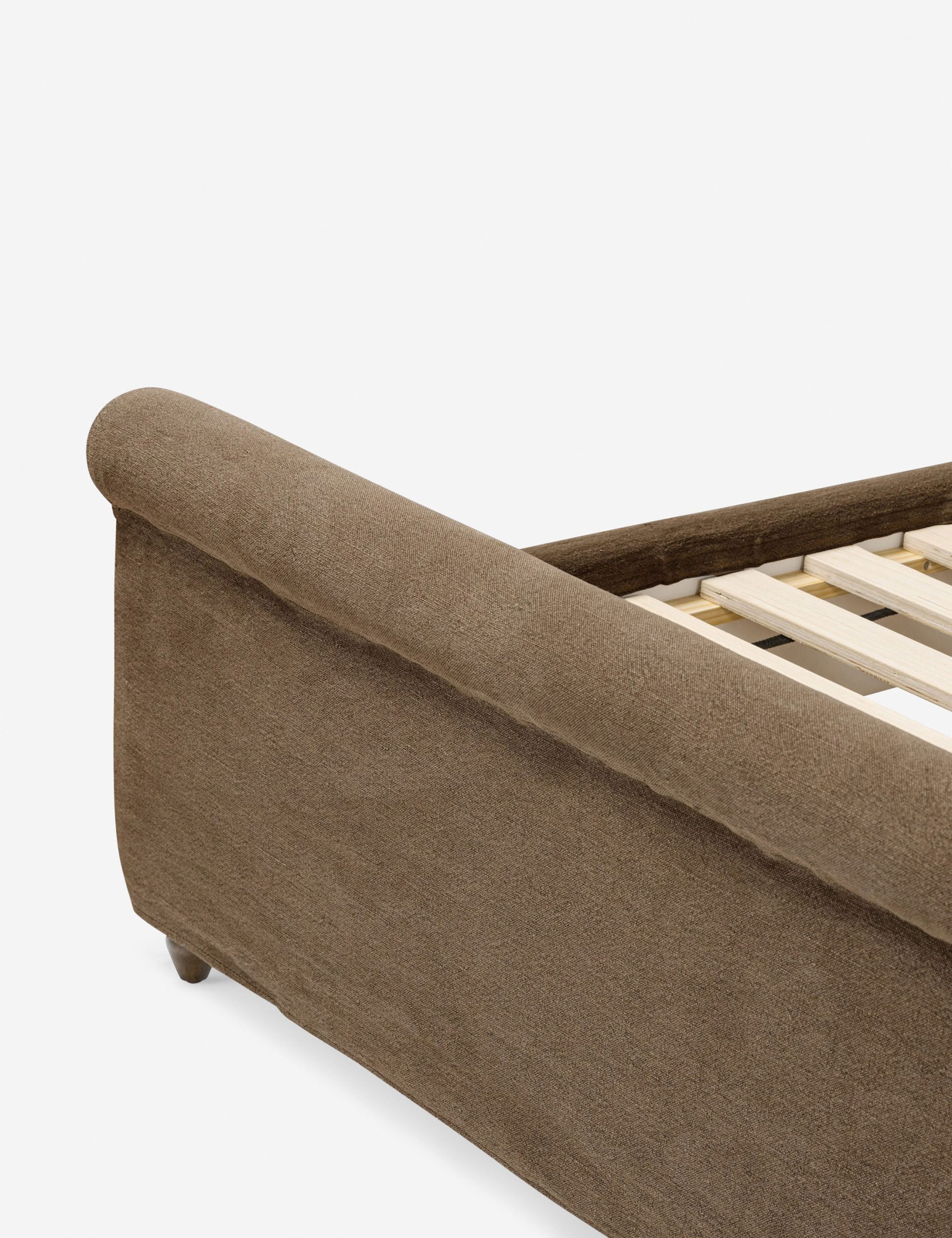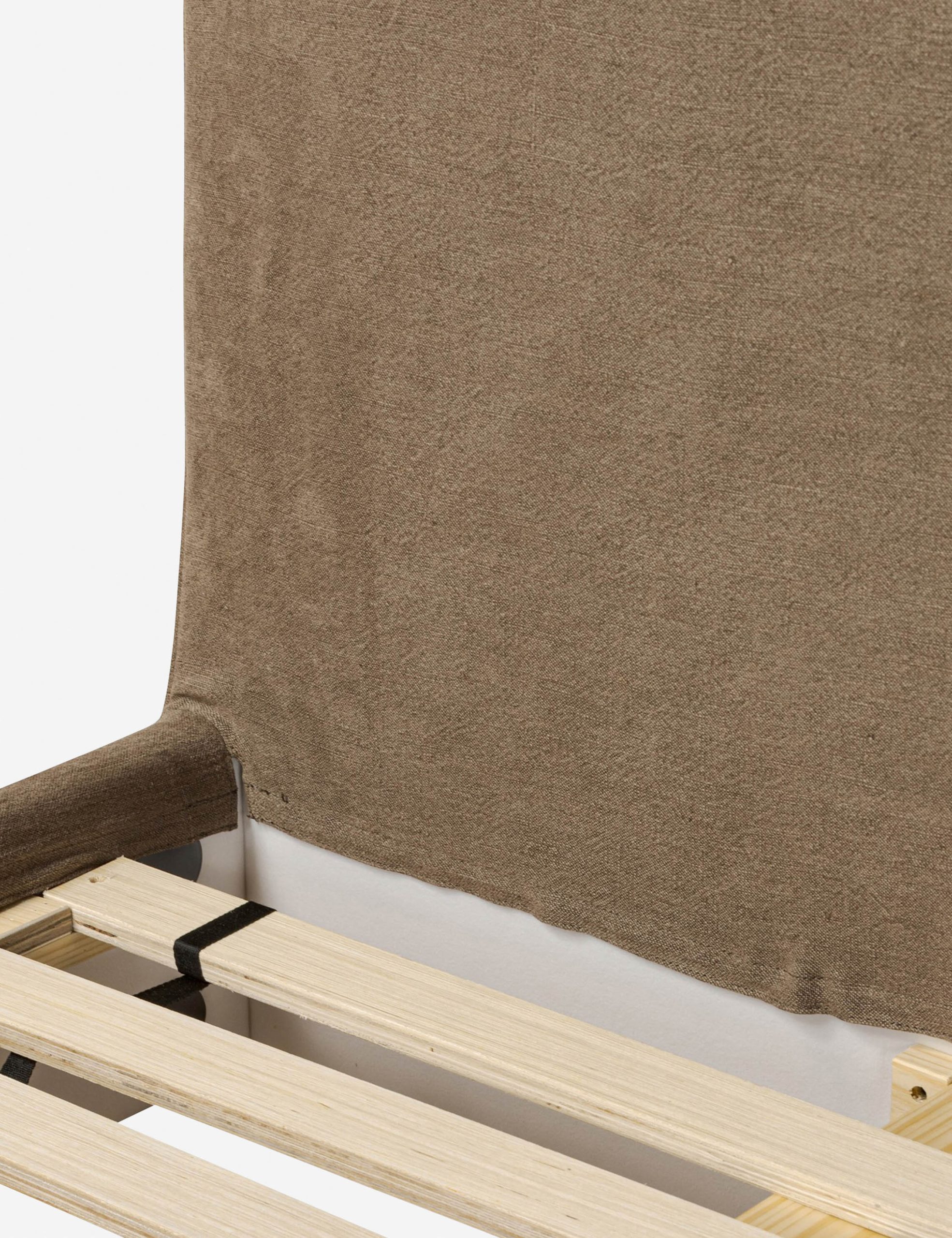 Four Hands brings their exceptional craftsmanship to a timeless collection rooted in Amber Lewis’ perennial California style. Petite rolled details crown the head and footboards of this modern bed with slipcover style upholstery. This bed frame is a neutral hue with soft, inviting ambiance perfect for a relaxed space built for rejuvenation.