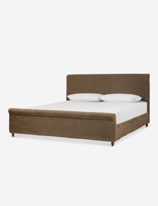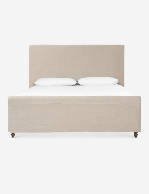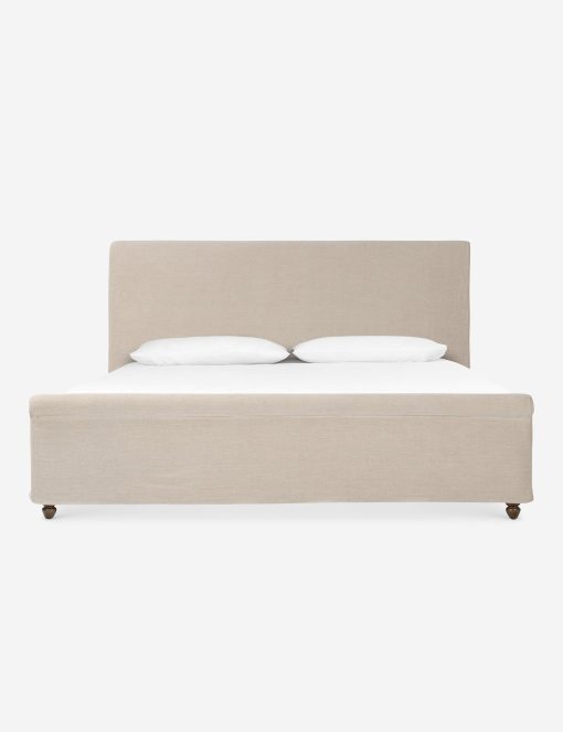 Four Hands brings their exceptional craftsmanship to a timeless collection rooted in Amber Lewis’ perennial California style. Petite rolled details crown the head and footboards of this modern bed with slipcover style upholstery. This bed frame is a neutral hue with soft, inviting ambiance perfect for a relaxed space built for rejuvenation.