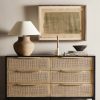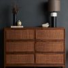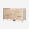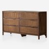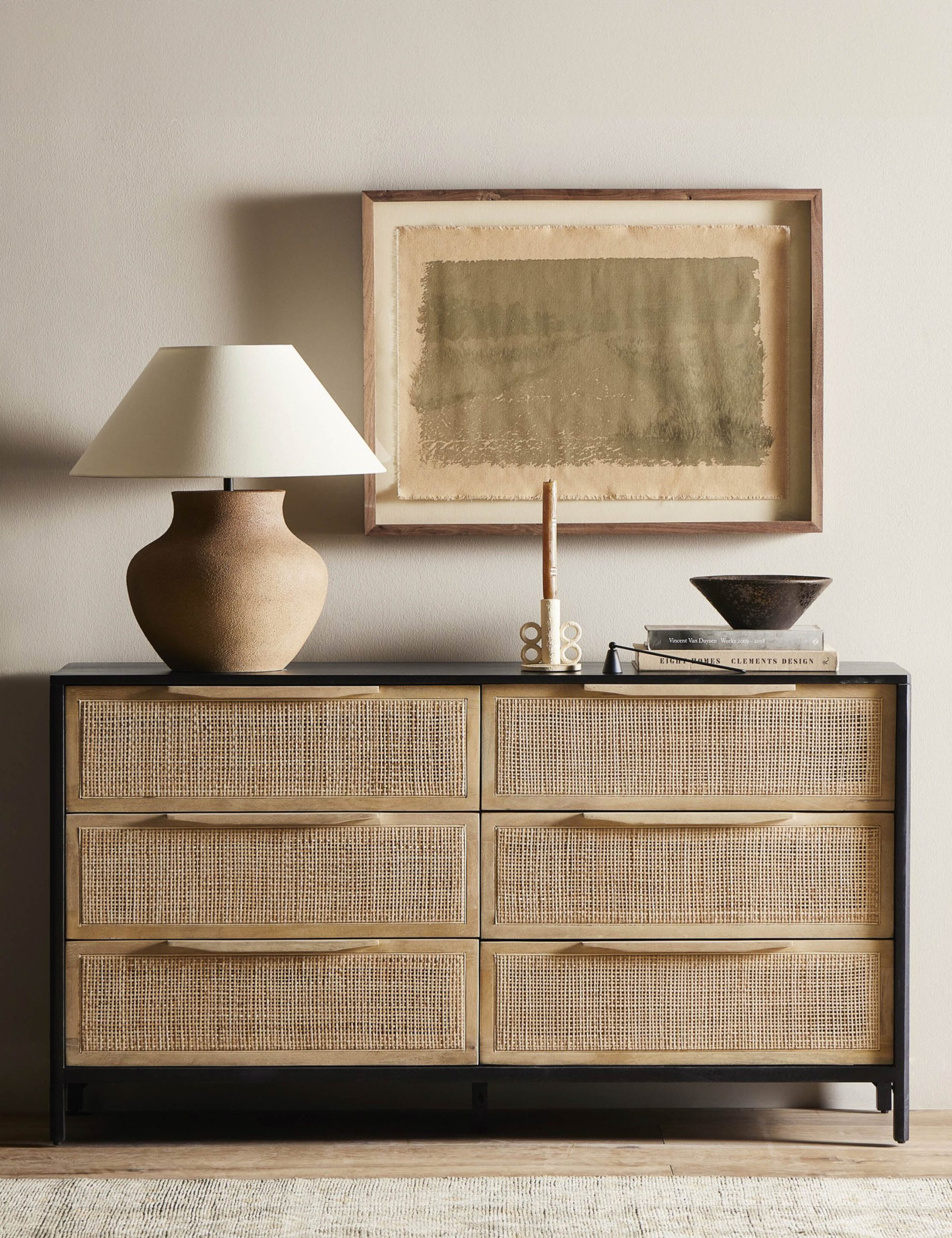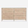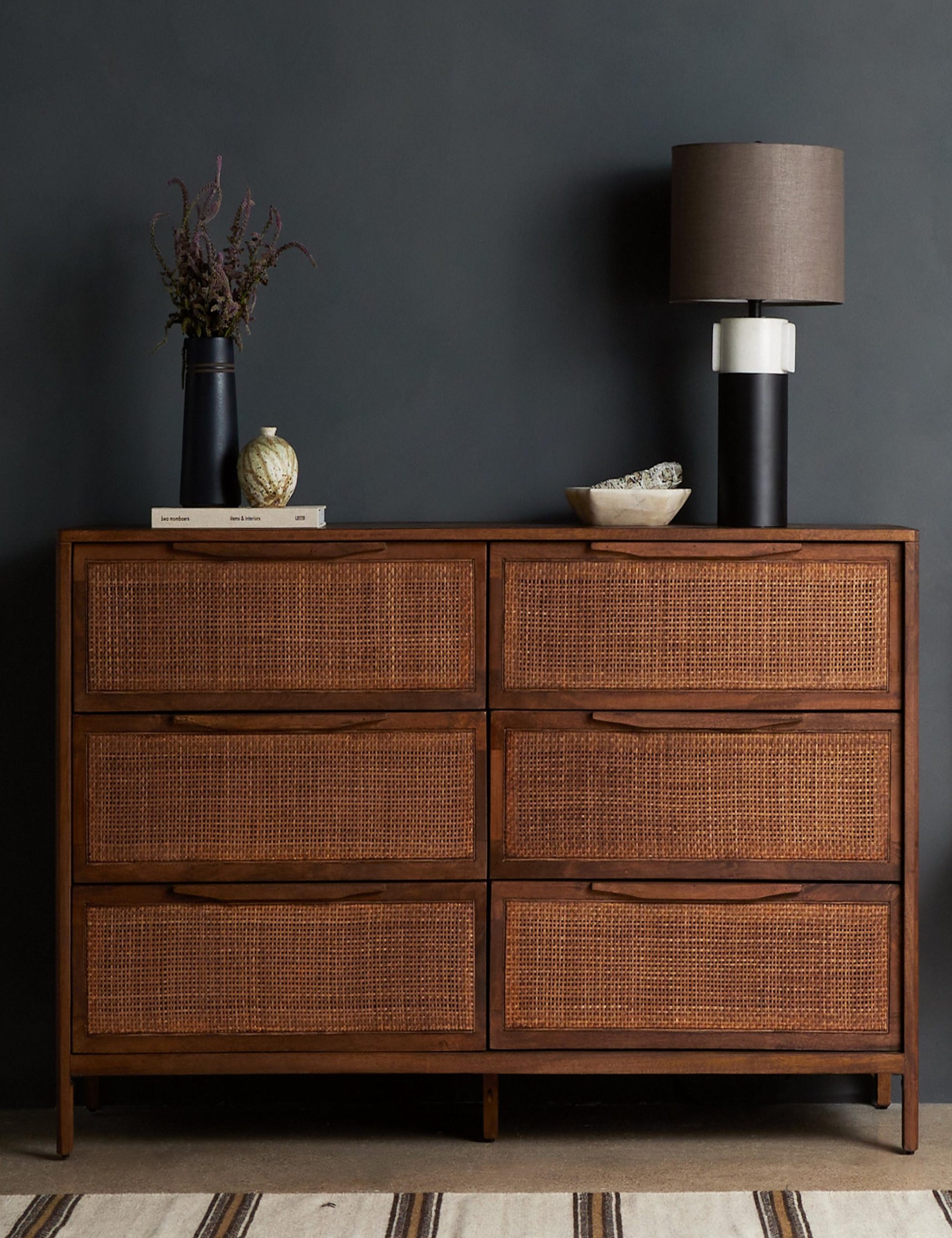 Clean lines and an airy profile bring a cool coastal feel to the Hannah dresser. We love the classic touch of the woven cane front for its natural texture and warmth. This dresser features six drawers for spacious storageâstyle with a mirror round mirror for a casually chic bedroom vanity.