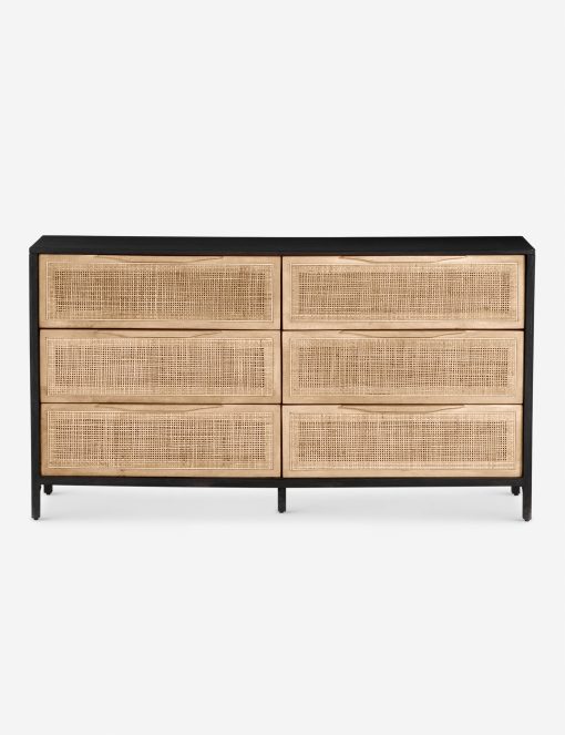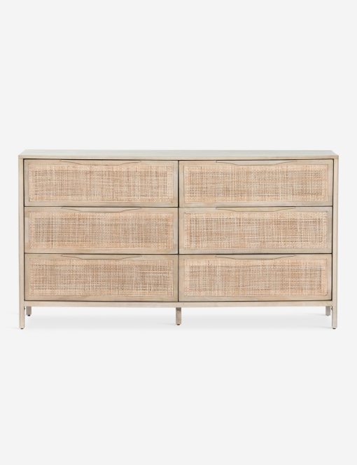 Clean lines and an airy profile bring a cool coastal feel to the Hannah dresser. We love the classic touch of the woven cane front for its natural texture and warmth. This dresser features six drawers for spacious storageâstyle with a mirror round mirror for a casually chic bedroom vanity.