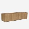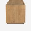 Fashioned from solid oak planks, this media console is versatile, refined, and grounded in natural grain appeal. With cabinet doors opening to spacious interior shelving, this wood console offers ample storage in a crisp design. The low-slung design brings a balanced touch of organic minimalism, perfect for a family room or casual lounge.