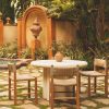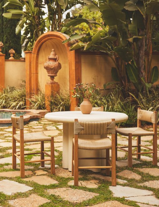 Add some texture to your al fresco set with our Taurean dining chair. The teak frame supports an intricately woven rush seat, made with all-weather wicker for lasting elegance on your patio or terrace.