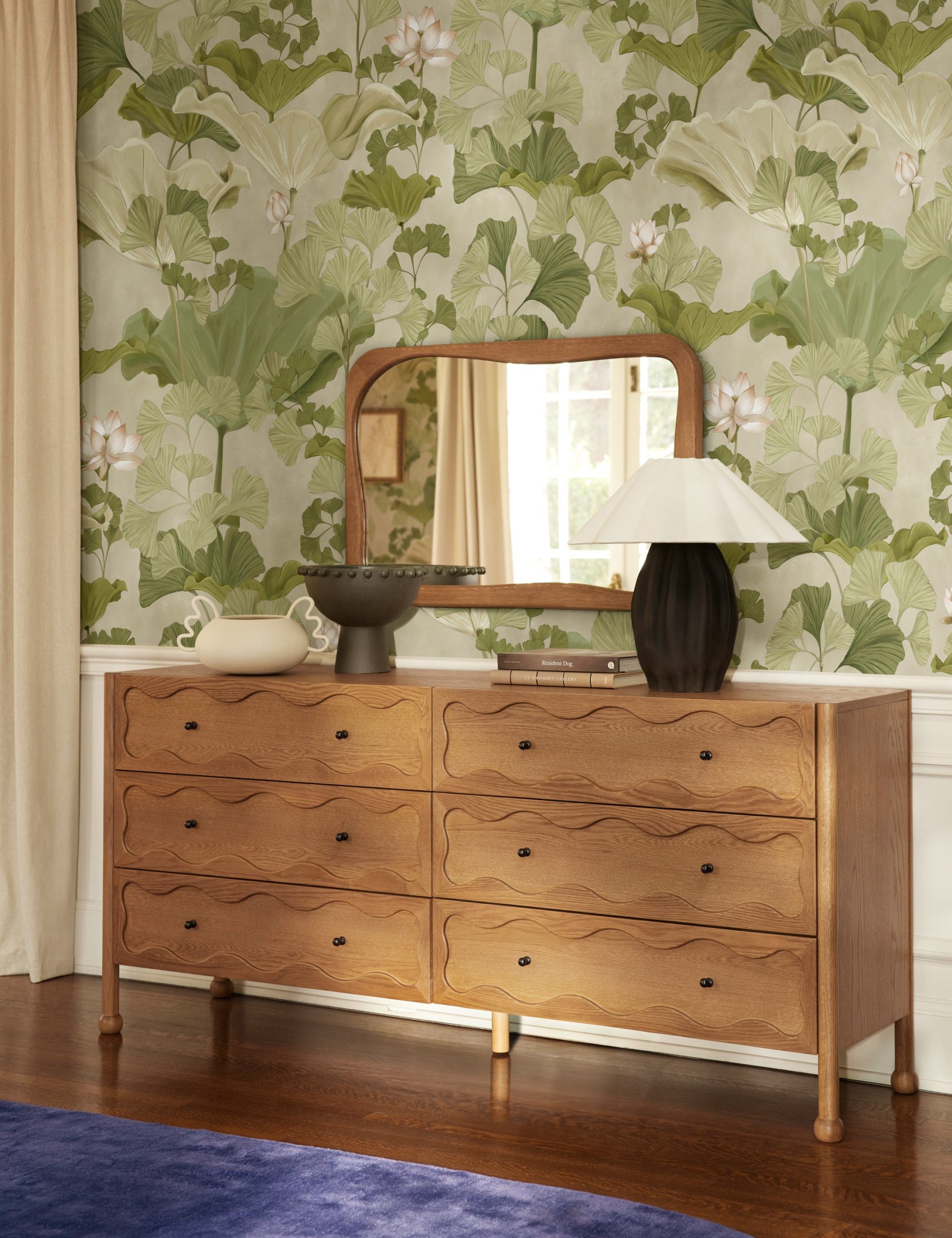 In this exclusive collection, Aimee Song brings her beloved fashion sense home with artful elements designed for living. The Galilea wall mirror features a solid wood frame rooted in organic warmth. In a rich finish, the wood’s natural grain and fluid line offer a soft impact to elevate your spaceâthe perfect mirror for grounding a modern curation.
