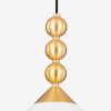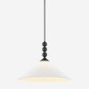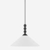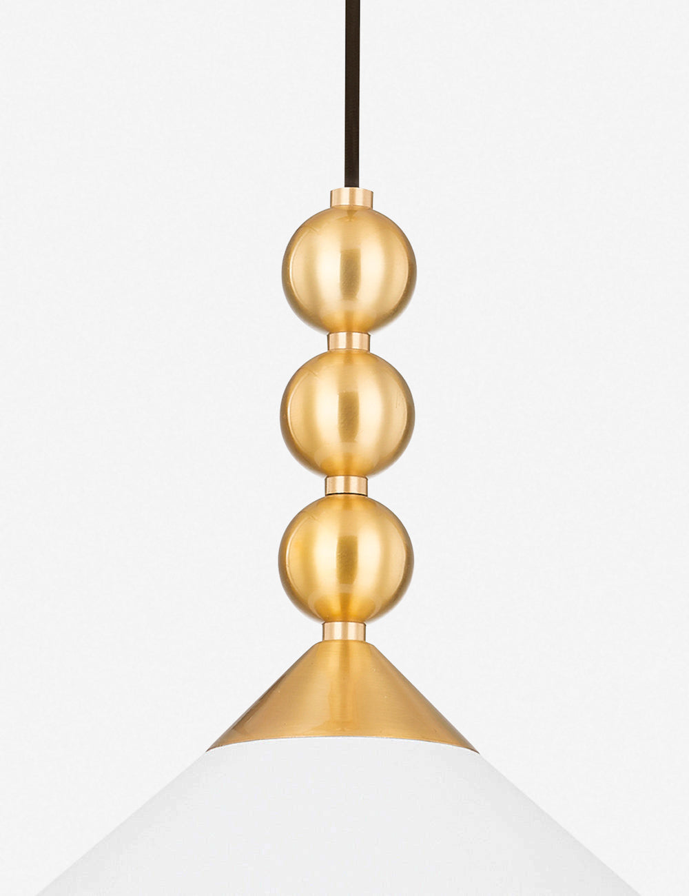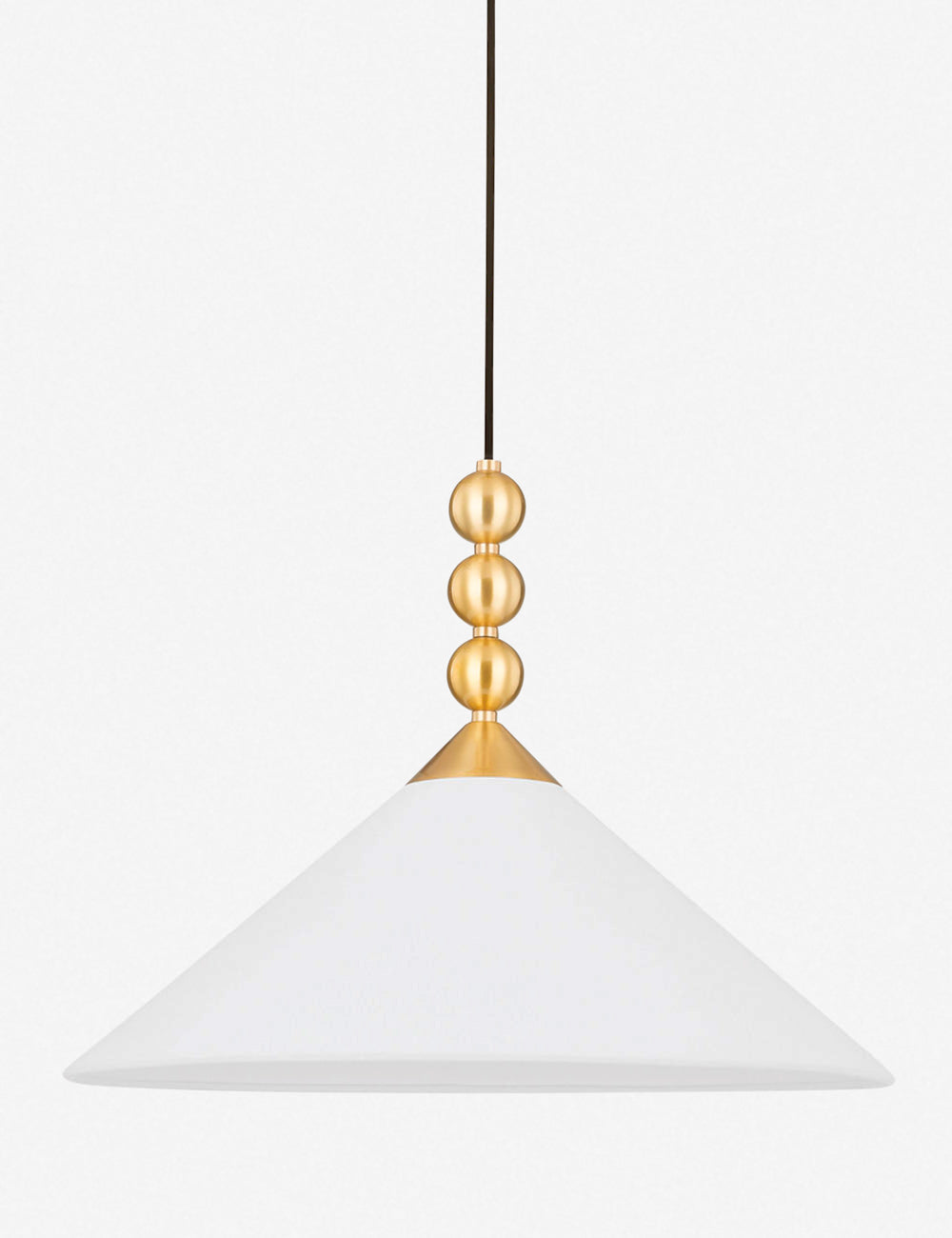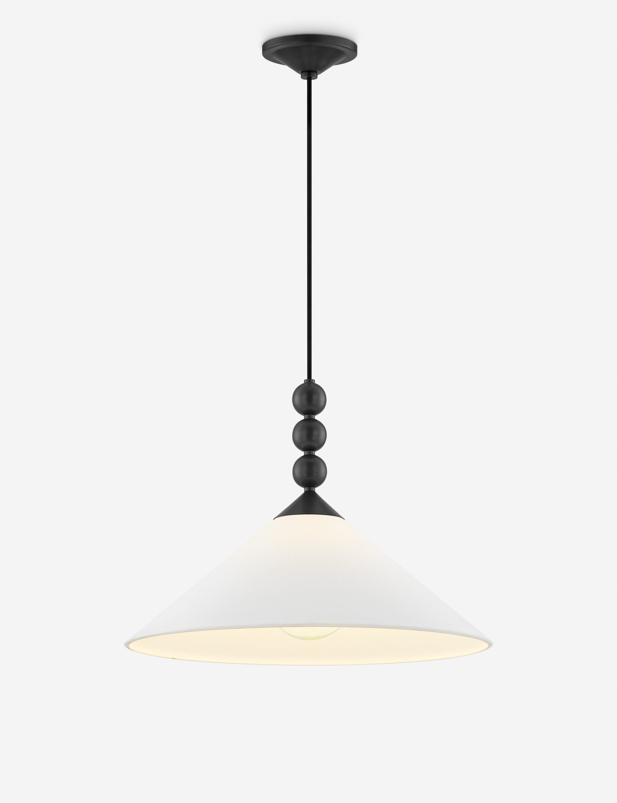 The Talise pendant offers a crisply modern style with an artful edge. Its clean silhouette features simple geometric shapes with a triangular taper and three-bead finial detail. This pendant light’s old bronze finish creates a striking contrast against the white linen shade for chic impact overhead.