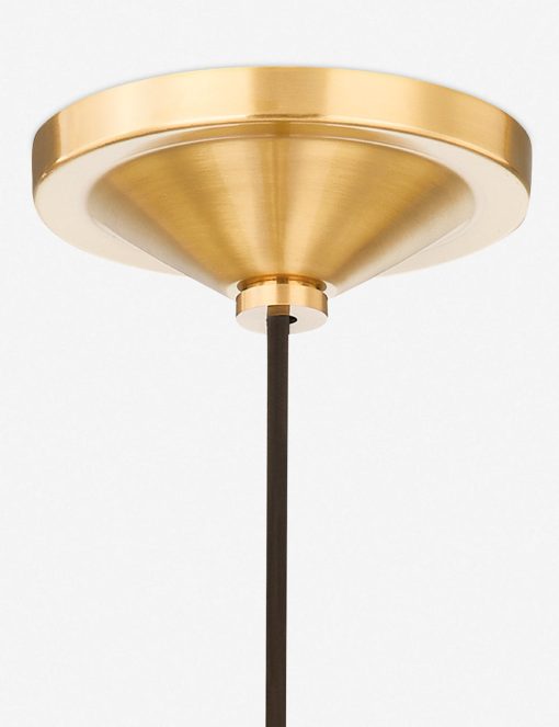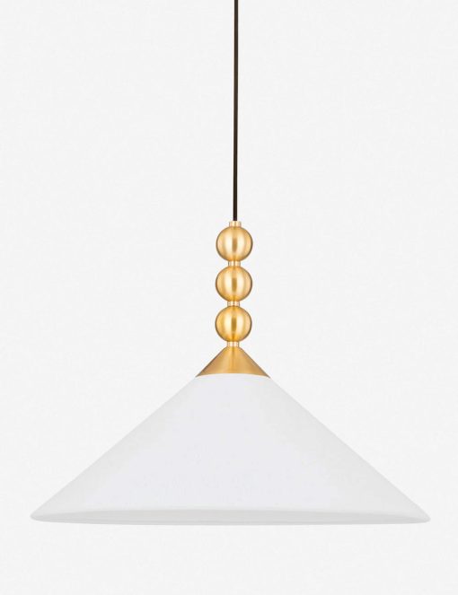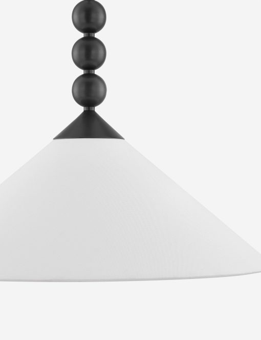 The Talise pendant offers a crisply modern style with an artful edge. Its clean silhouette features simple geometric shapes with a triangular taper and three-bead finial detail. This pendant light’s old bronze finish creates a striking contrast against the white linen shade for chic impact overhead.