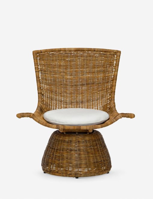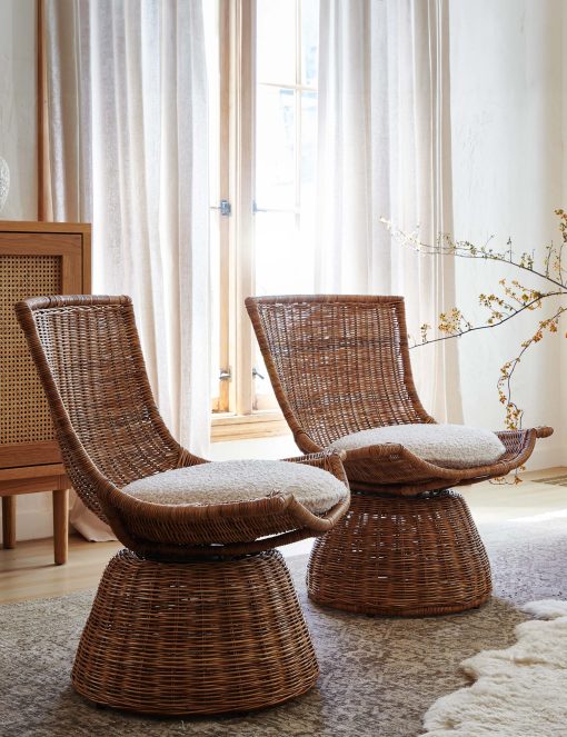 The Amado swivel chair showcases the endless refreshability of wicker. Modern lines and a swivel base bring a fresh edge to the handwoven rattan, offering natural texture, artfully elevated. A disc cushion completes this chair with the perfect touch of comfort.