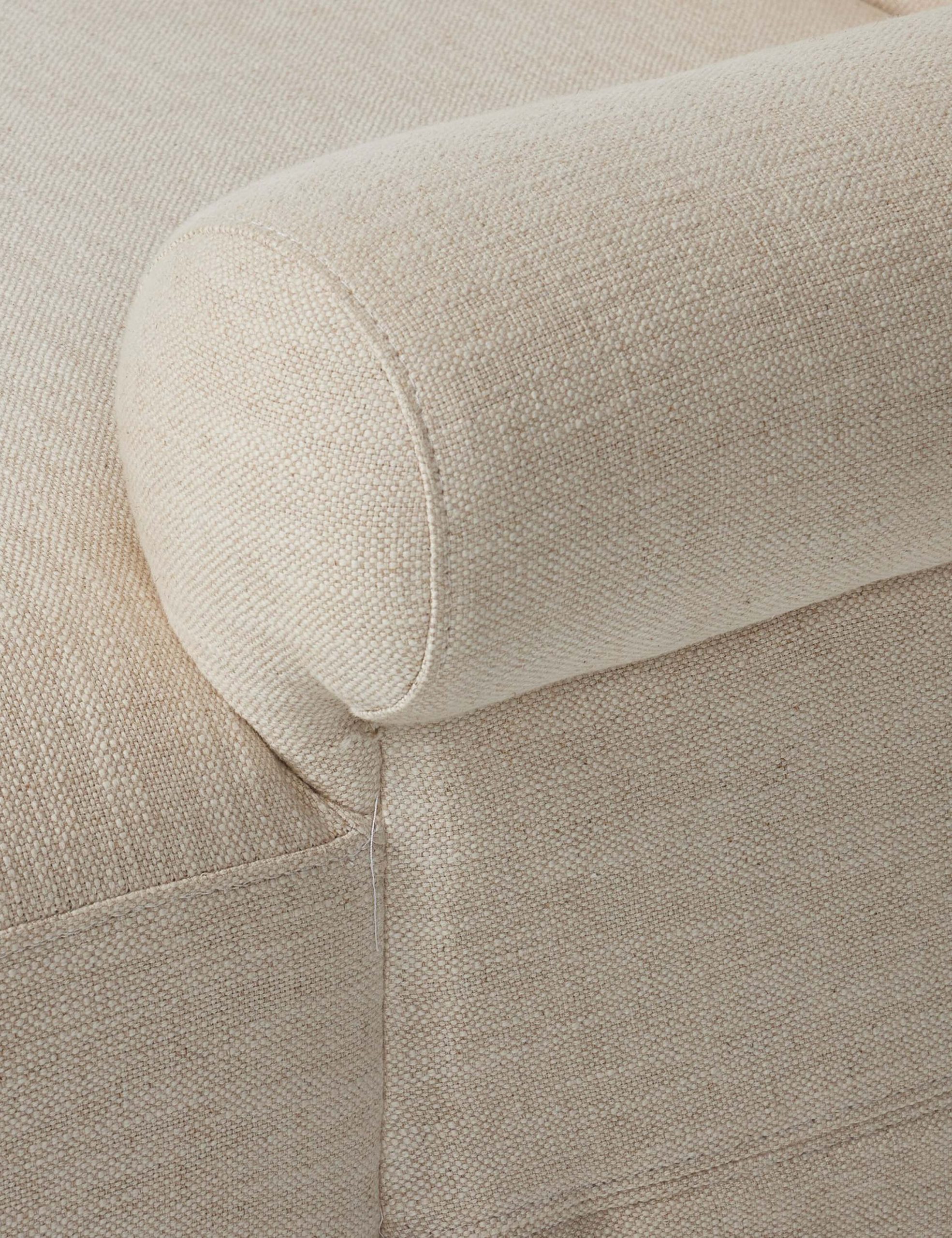 Four Hands brings their exceptional craftsmanship to a timeless collection rooted in Amber Lewis’ perennial California style. The Arden chaise invites you into plush comfort with its wide rolled arms, high back, and deep lounge seat. A fixed cotton-linen blend slipcover completes this comfy chaise with a laid-back look and feel.