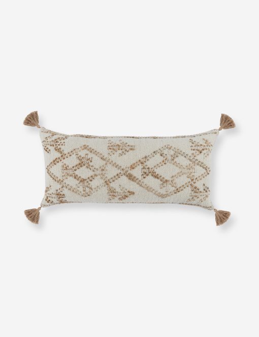 A striking, vintage-inspired pattern pops off this neutral-toned lumbar accent pillow to bring timeless, understated appeal to your sofa or bed. For a touch of flair, four corner tassels complete this decorative pillow’s look.