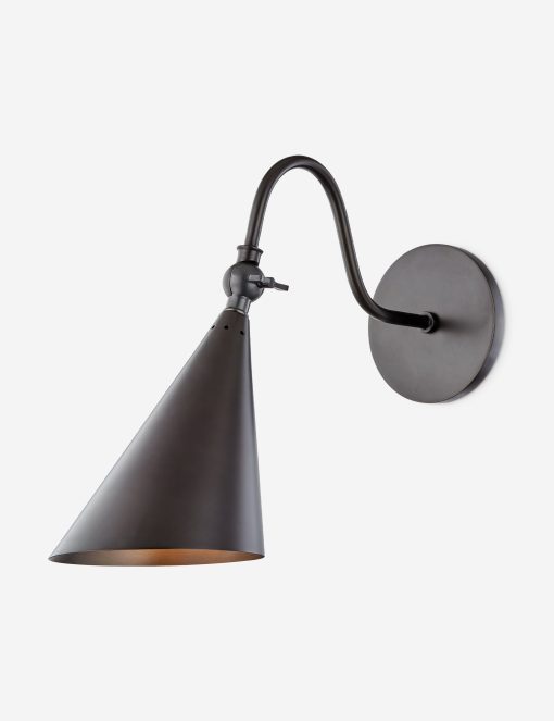 Laurent brings a stylish edge to task lighting with its gooseneck design and skewed cone shade forming a dramatic silhouette. The swivel key allows you to adjust the sconce, offering the perfect touch for a reading nook, bedside, or home office. We love this wall sconce for creating directional light with no footprint.