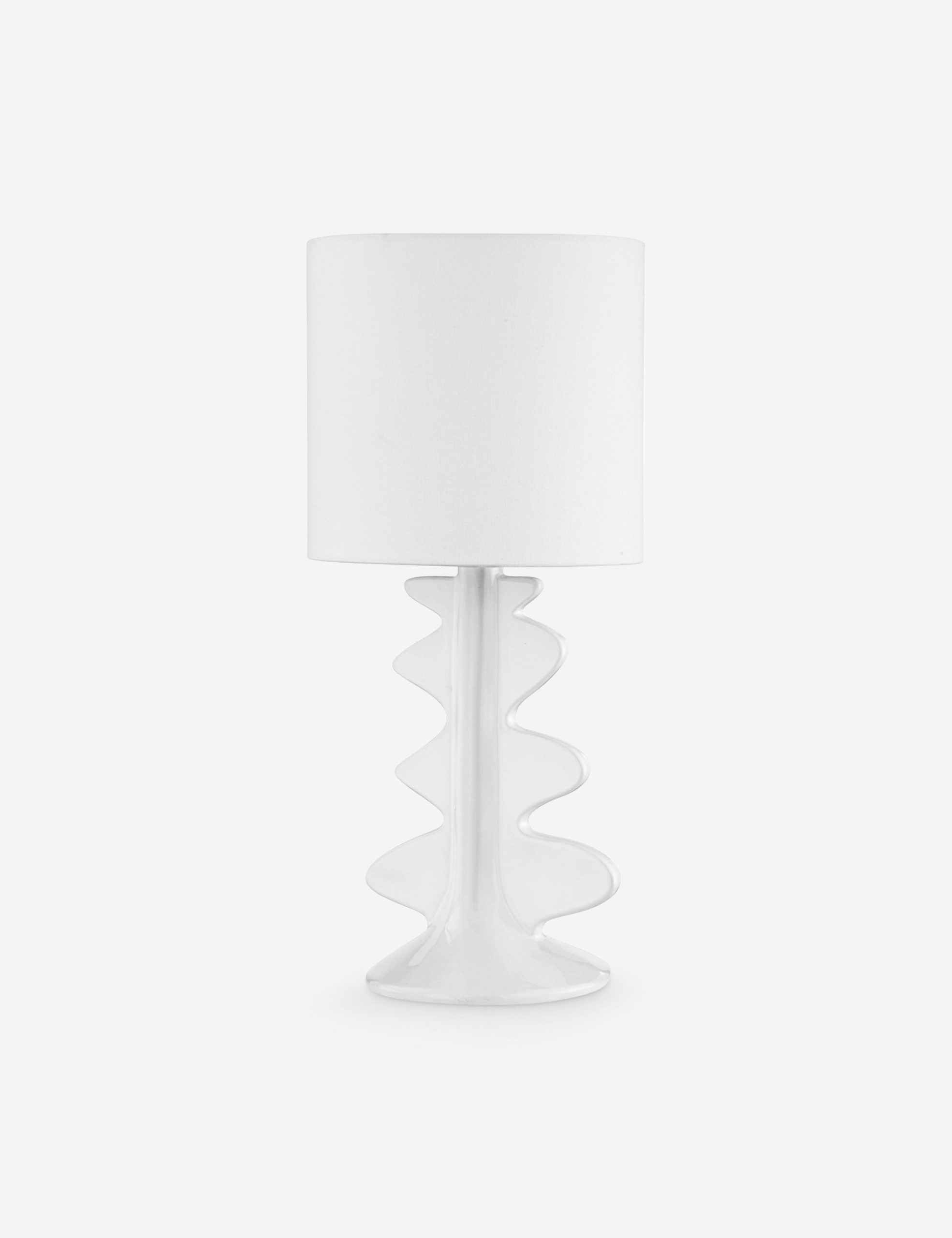 Fluid lines bring a sculptural form to this modern table lamp. A bright addition to any setting, it’s the perfect way to create visual interest without overwhelming on a side table or nightstand. The lamp’s ceramic curves are topped with a linen drum shade, creating a sense of balance in this tabletop statement-maker.