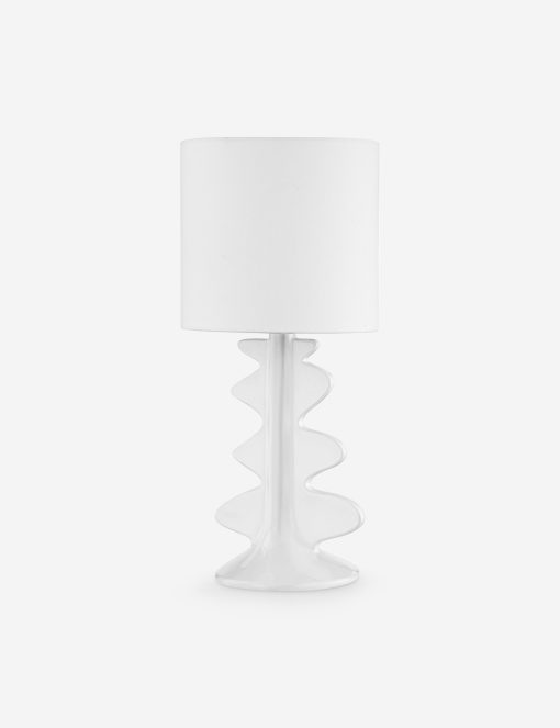 Fluid lines bring a sculptural form to this modern table lamp. A bright addition to any setting, it’s the perfect way to create visual interest without overwhelming on a side table or nightstand. The lamp’s ceramic curves are topped with a linen drum shade, creating a sense of balance in this tabletop statement-maker.