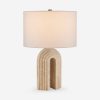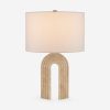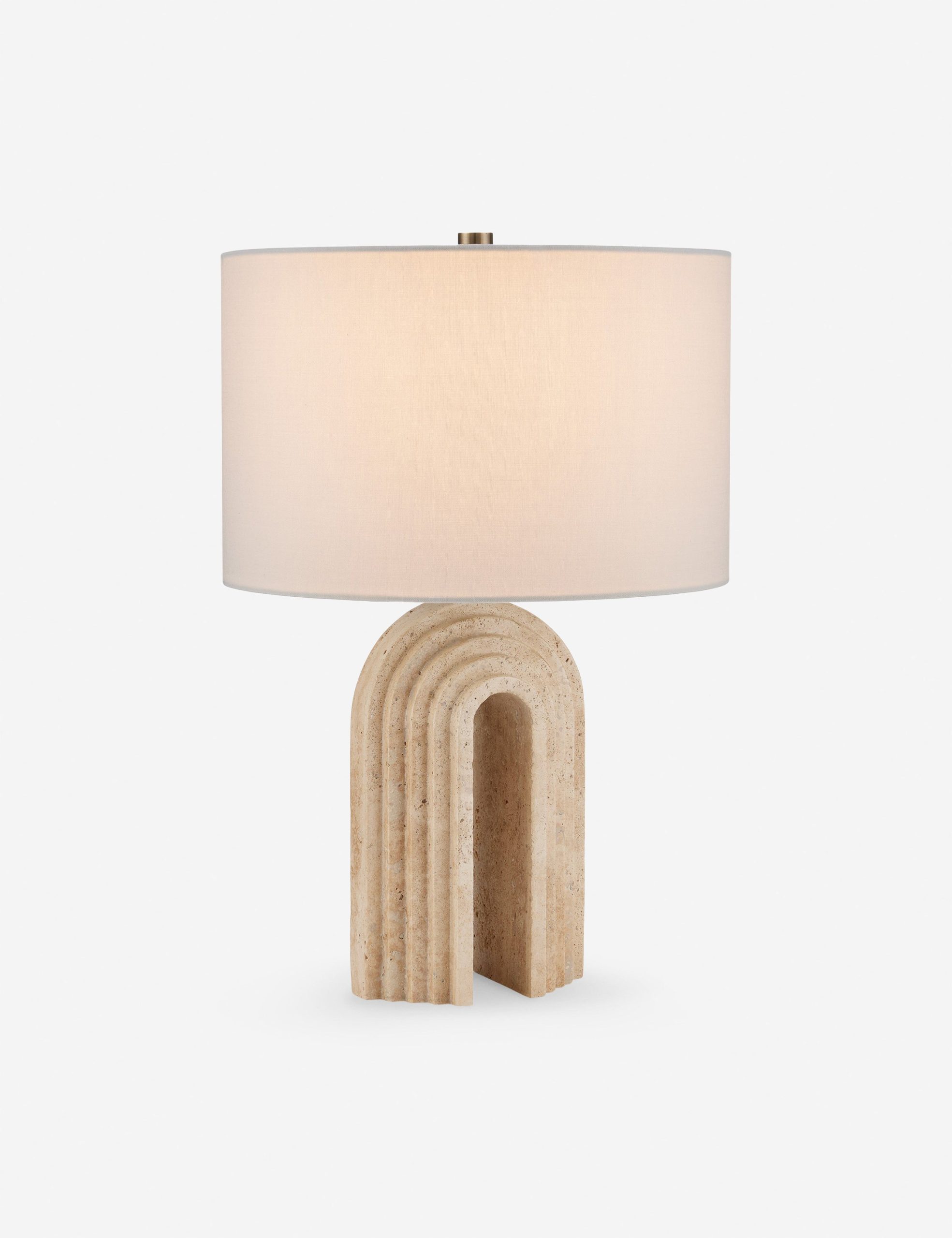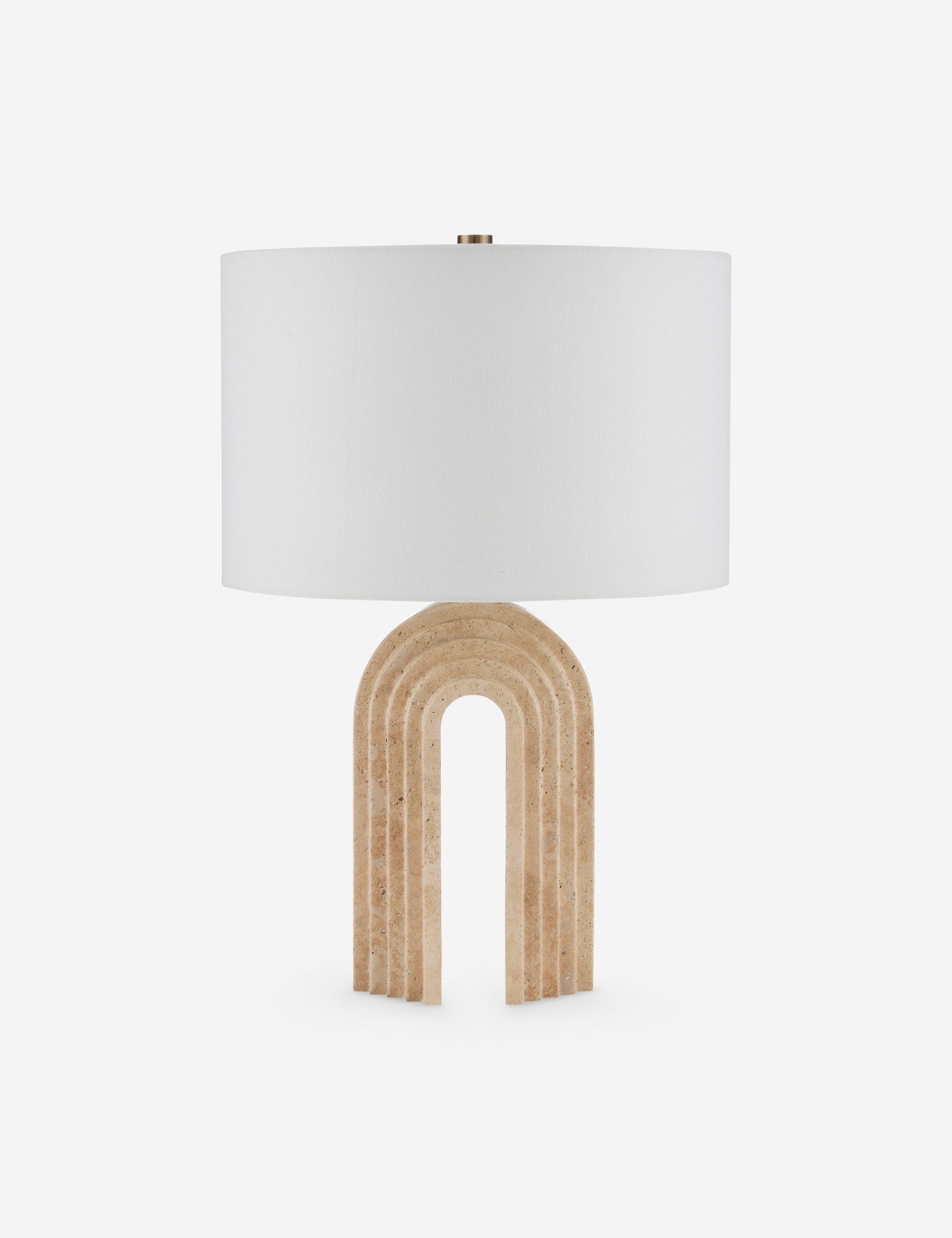 With a classic architectural feel, the beautiful travertine stone utilized in this lamp offers the perfect touch of texture. Its graceful, layered arch base adds depth and dimension to any tabletop curation. An off-white drum shade completes the look with transitional appeal.