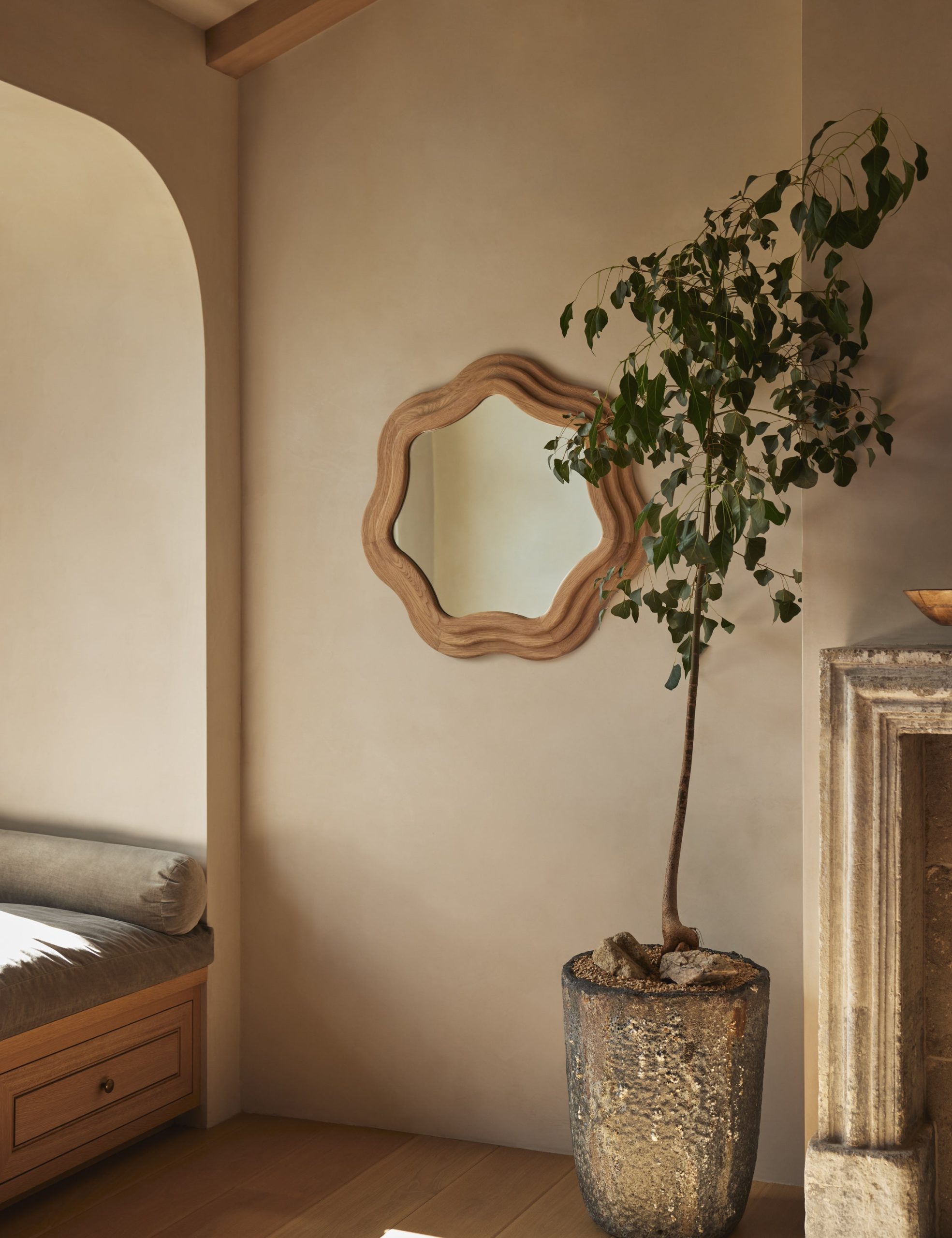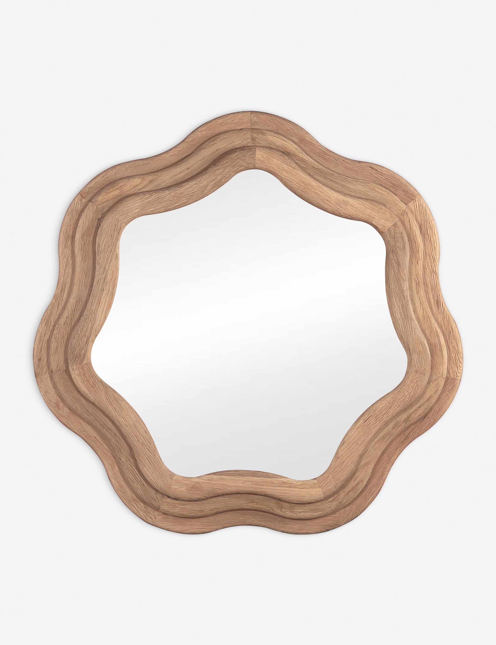 The Lera mirror’s wavy silhouette strikes a sophisticated look with an edge of whimsy. The artful shape brings a sculptural dimension to the solid oak frameâfashioning a stylish trendsetter made to last. This round mirror is the perfect way to brighten up an entryway or living space with a modern touch.