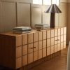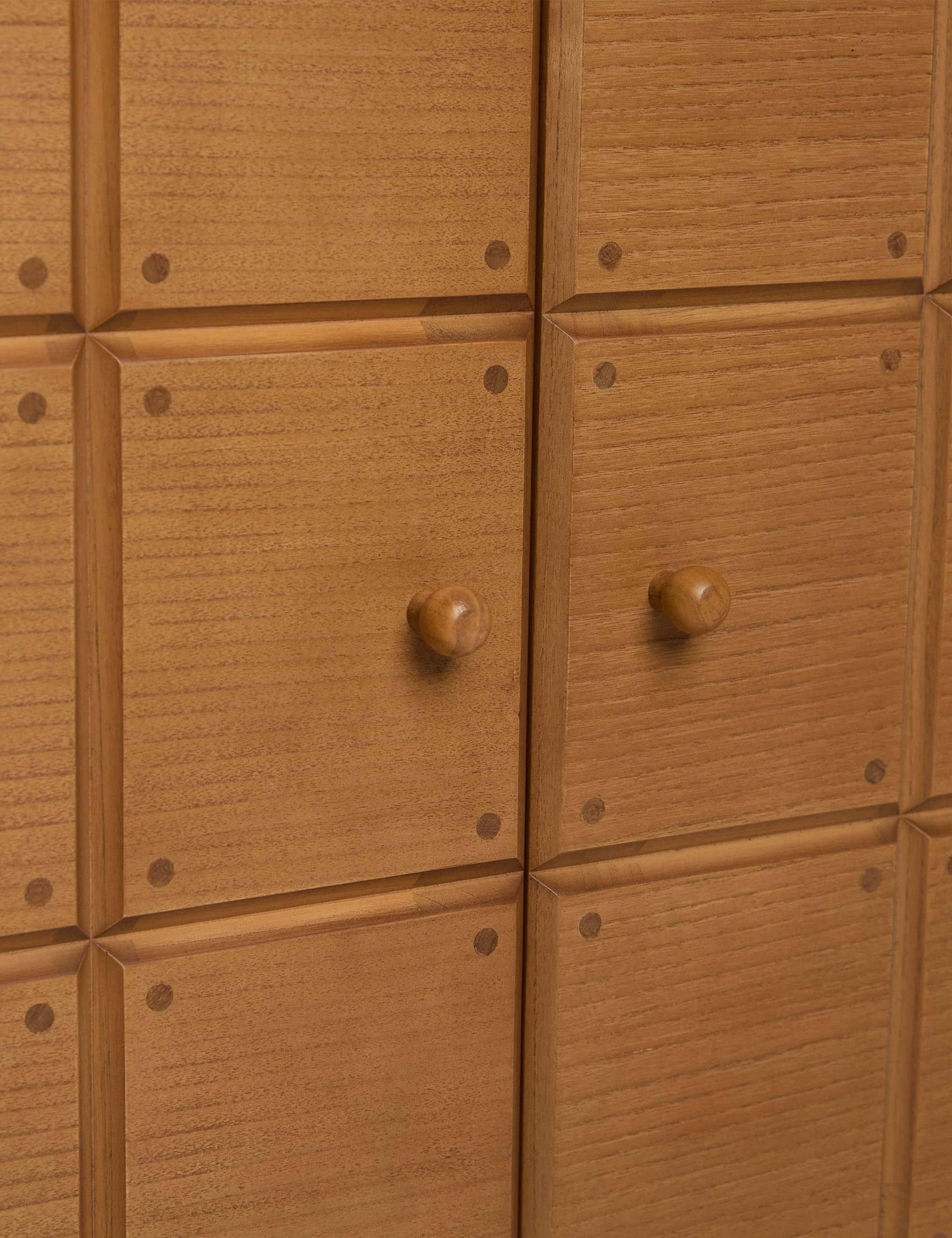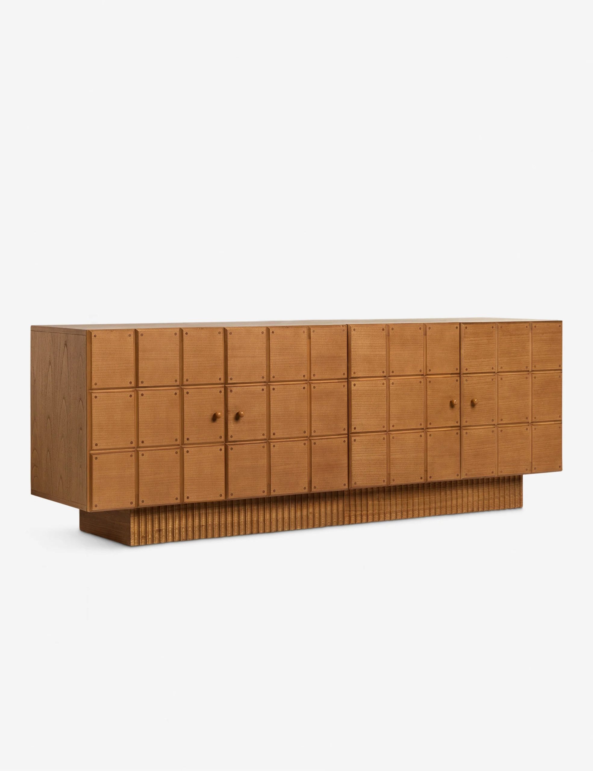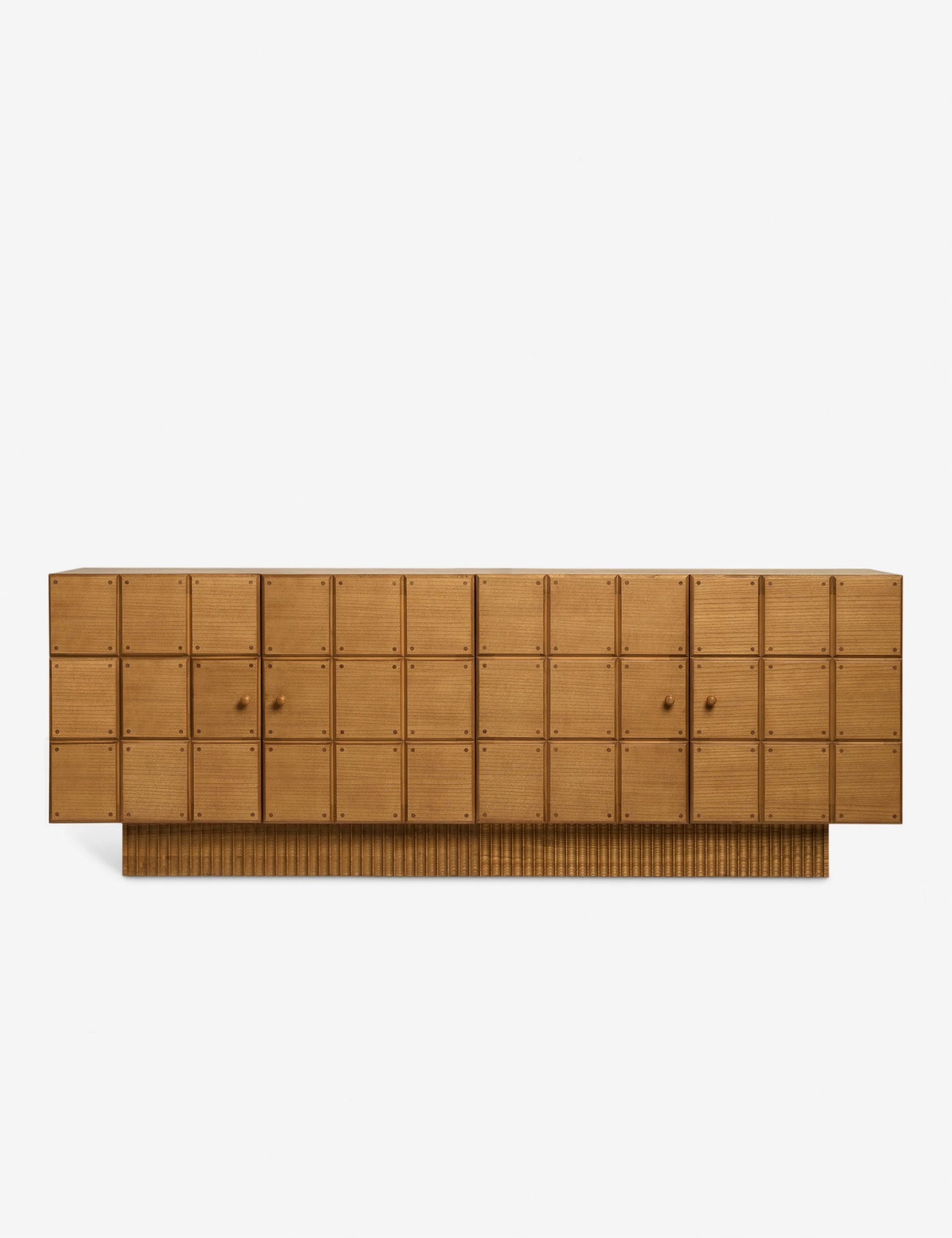 The Lee sideboard offers visual intrigue and natural grain warmth with its blockwork detailing and fluted plinth base. The name is a nod to Sarah’s dad, who fabricated the custom doors on which the cabinet doors are based. This sideboard cabinet is from our exclusive Sarah Sherman Samuel collaboration and features all the trademarks of her warm, edited style.