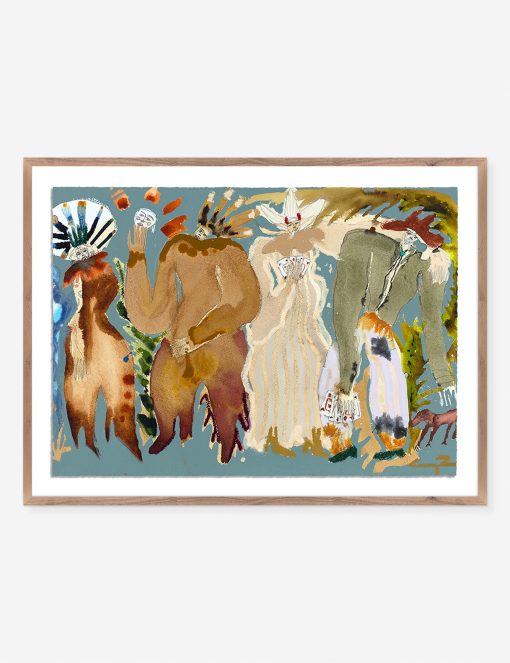 Caroline Pinney’s artwork has a vibrant style that captures subjects with lyricism and movement. Bold tones and flowing lines bring life to the freeform figures in this abstract composition. We love the immediacy of this piece for an eye-catching addition to a colorful wall art curation.
