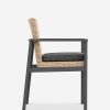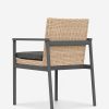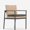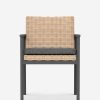 The Walsh dining chair brings mid-century charm with a laid-back poise. The all-weather wicker seat sits in a clean aluminum frame for a streamlined look with a touch of texture. We love the versatility of these dining arm chairs for a modern tone in an outdoor lounge or open-air design.