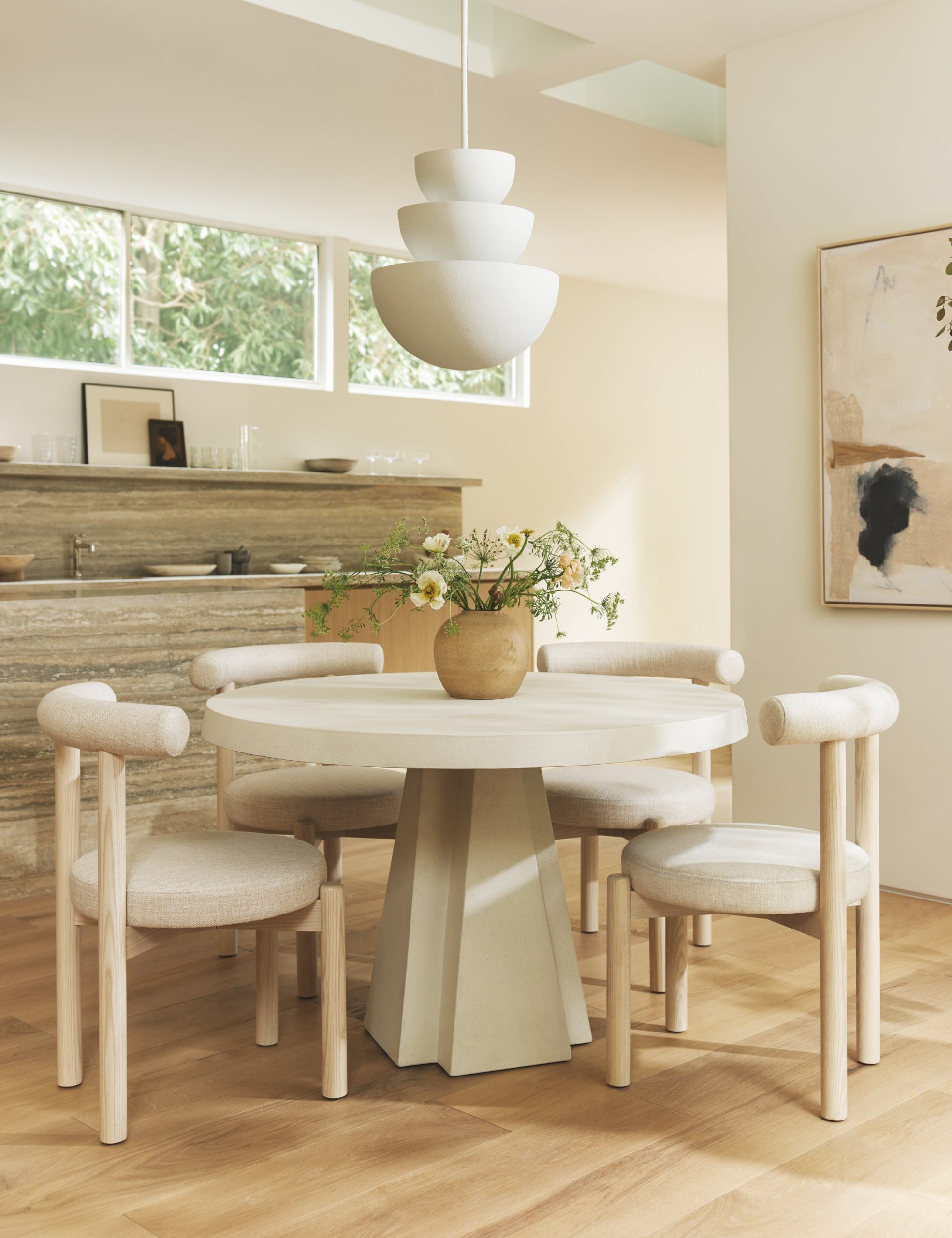 Christiane Lemieux brings her keen eye to a sculptural lighting collection made for livable design—covering every element from lamps and sconces to pendants and chandeliers. Beaunay references 20th-century European decor, blending notes from early Art Deco to Italian mid-century, all in a freshly modern style. This tiered chandelier design is set for statement appeal in a dining room or lounge.