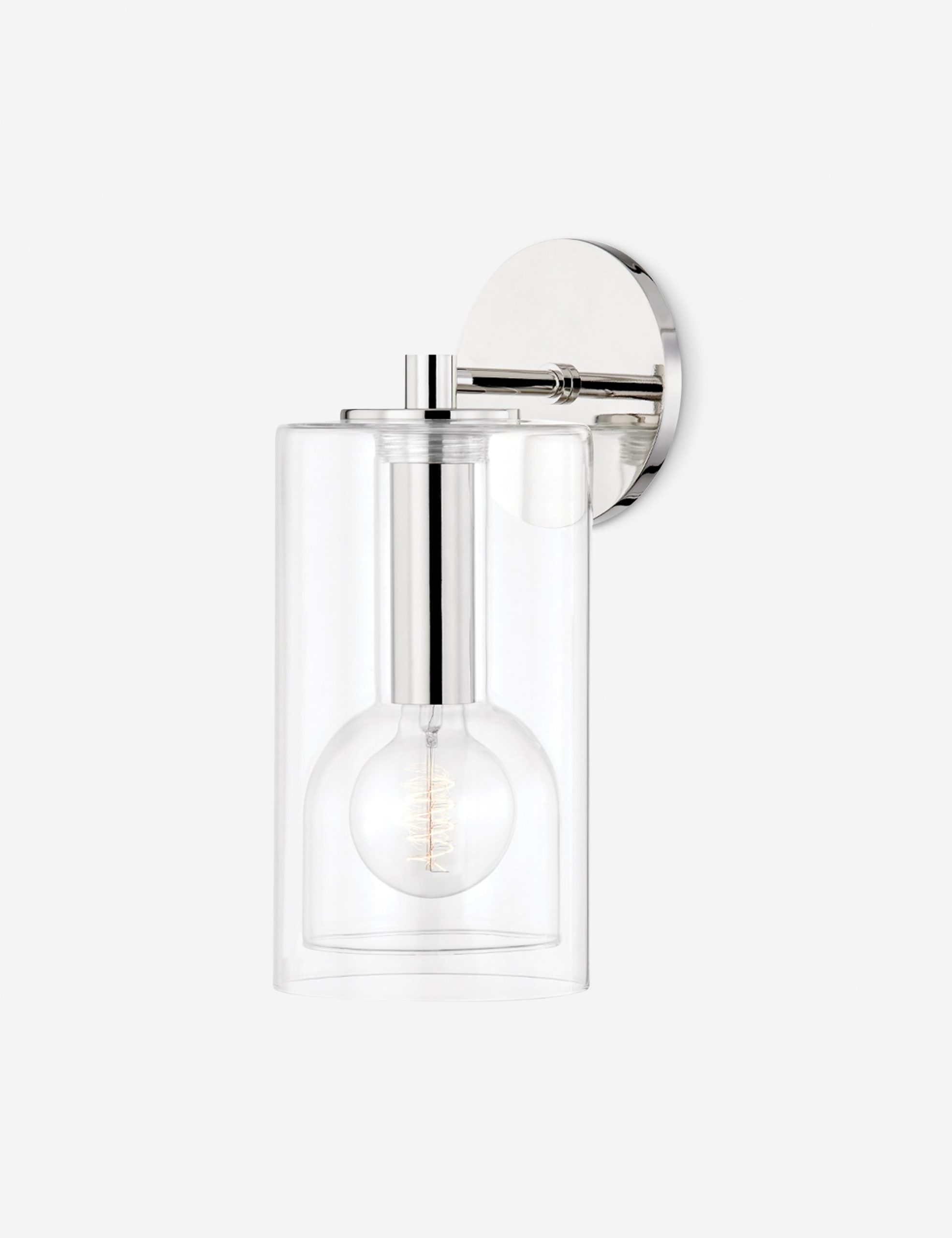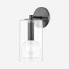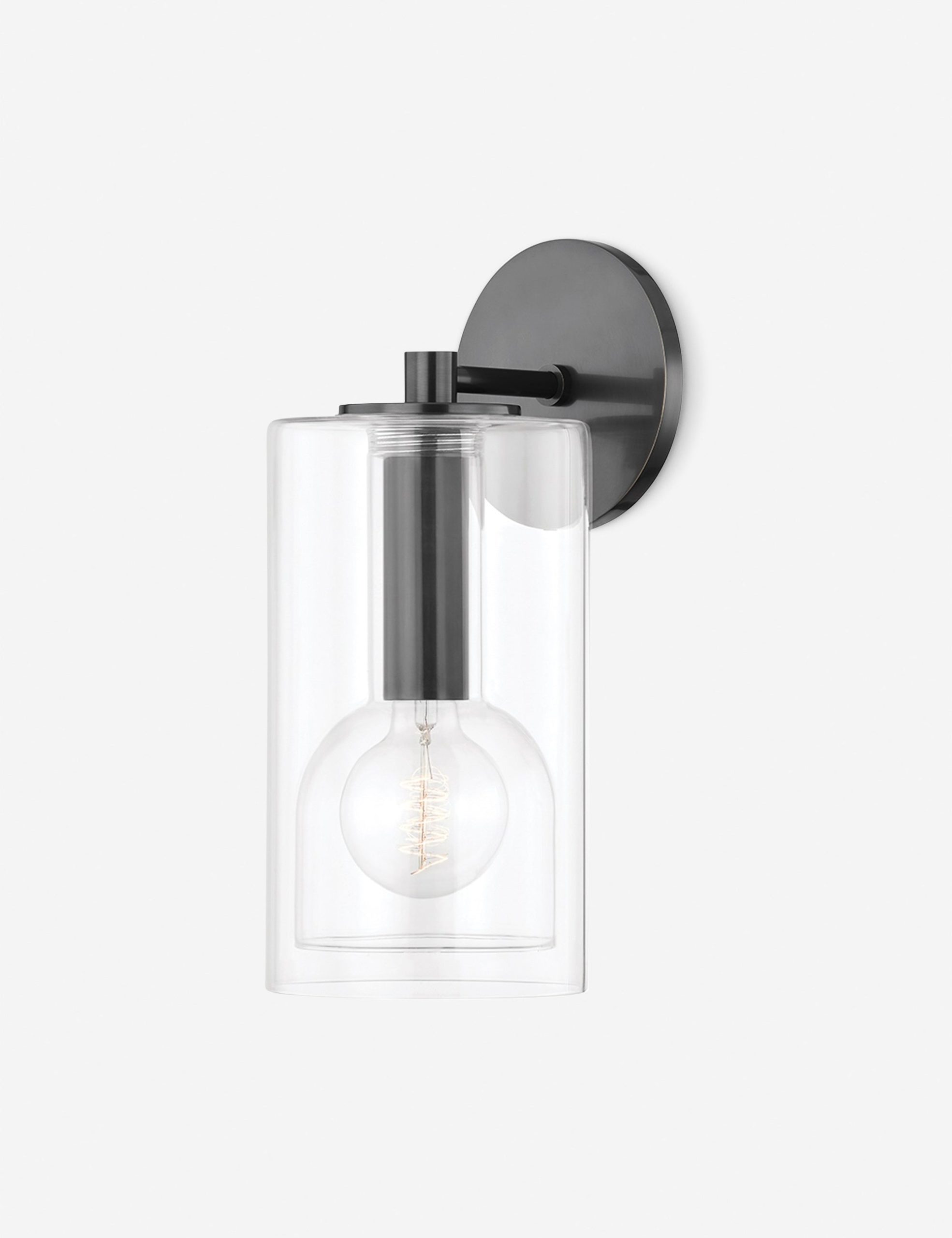 Layers of clean lines form an elegant design laid bare by a nested clear glass housing in this smart-looking wall sconce. An antique brass finish strikes a note of opulence making this an ideal sconce for a warm, chic space.