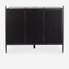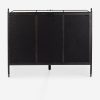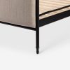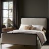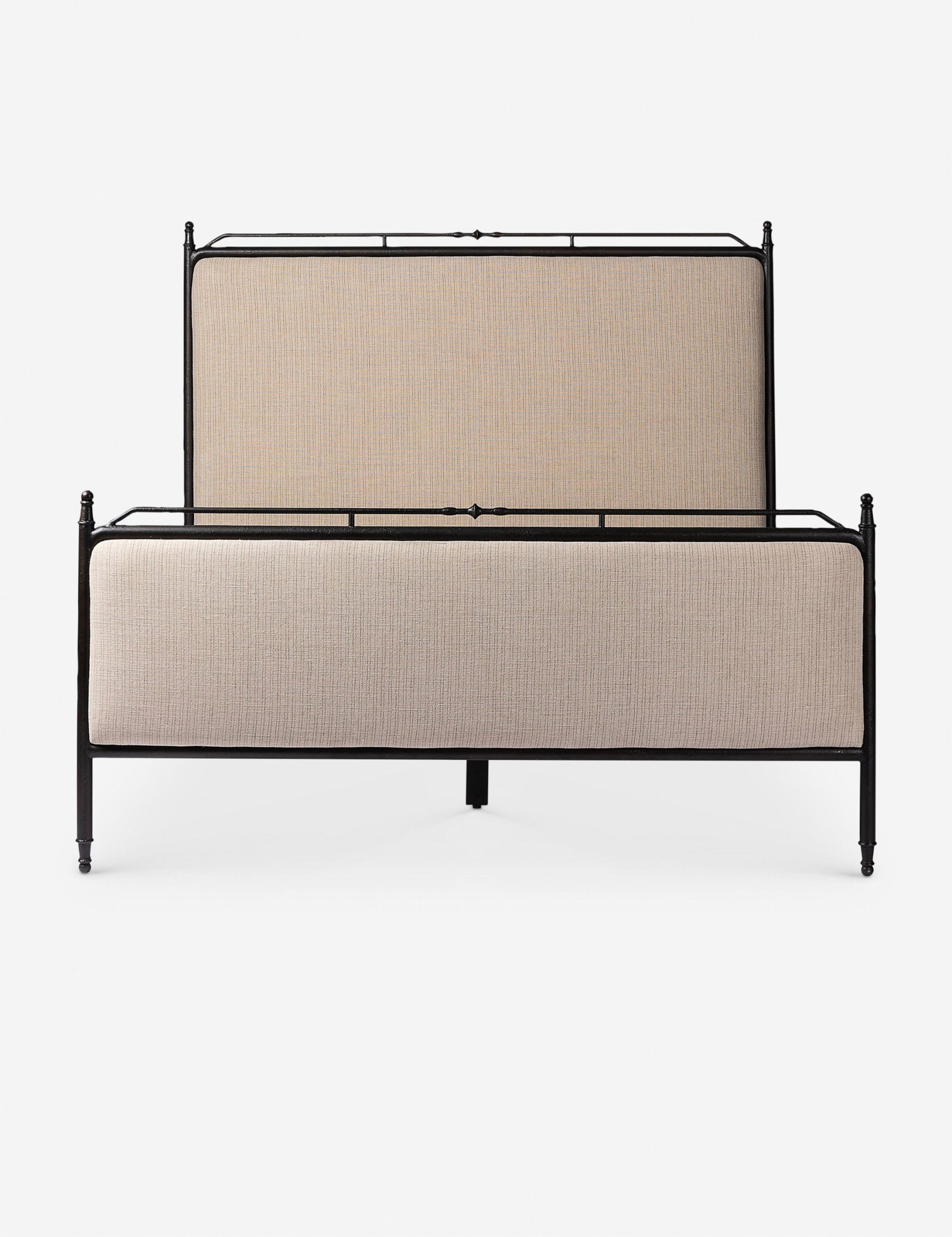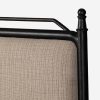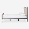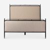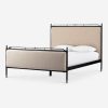 Four Hands brings their exceptional craftsmanship to a timeless collection rooted in Amber Lewis’ perennial California style. This platform bed mixes materials with quiet sophistication, pairing an antique black iron frame with softly padded upholstered in a linen blend. The bed frame’s slender lines and a subtle French ticking stripe pattern lend a tailored look with a fresh feel.
