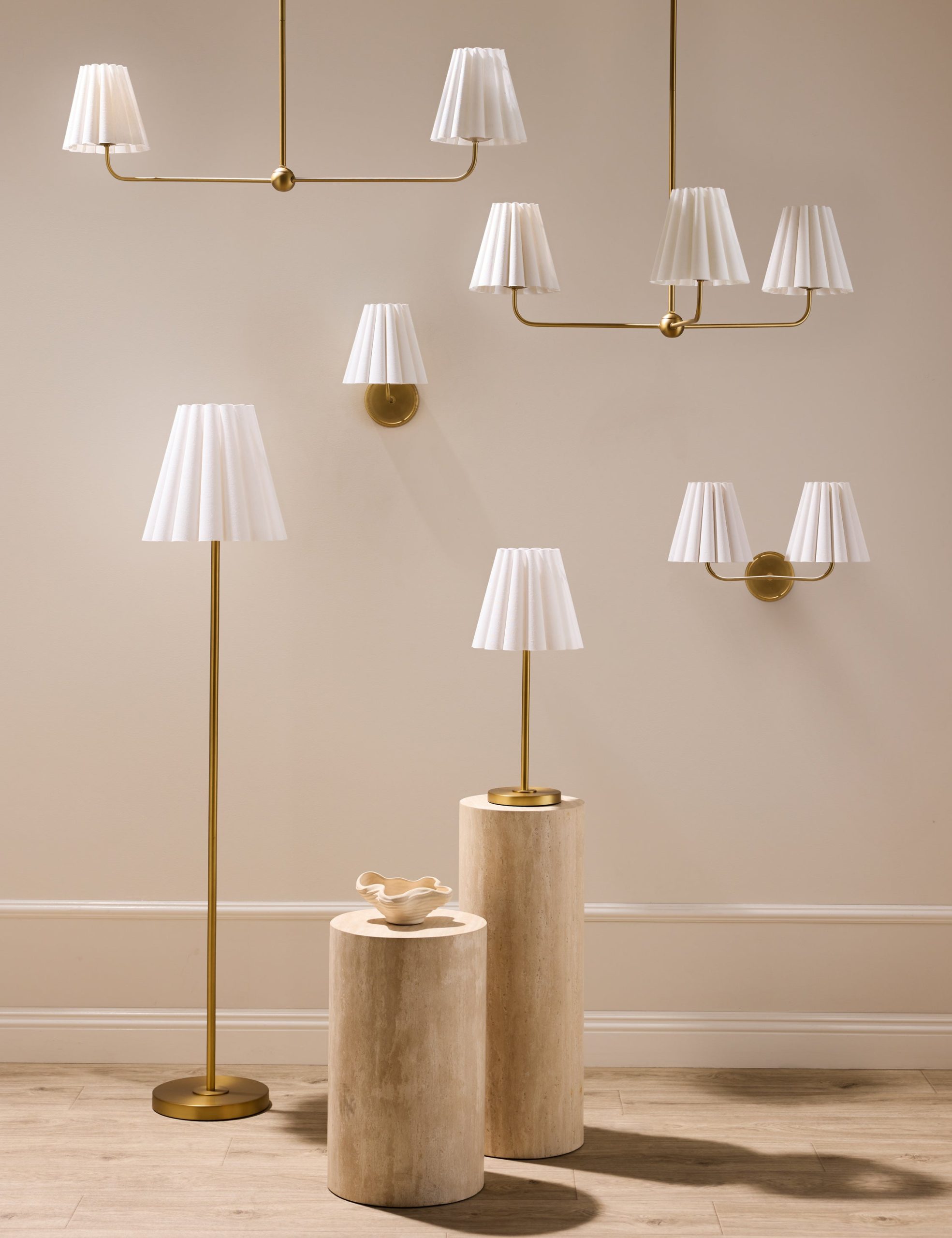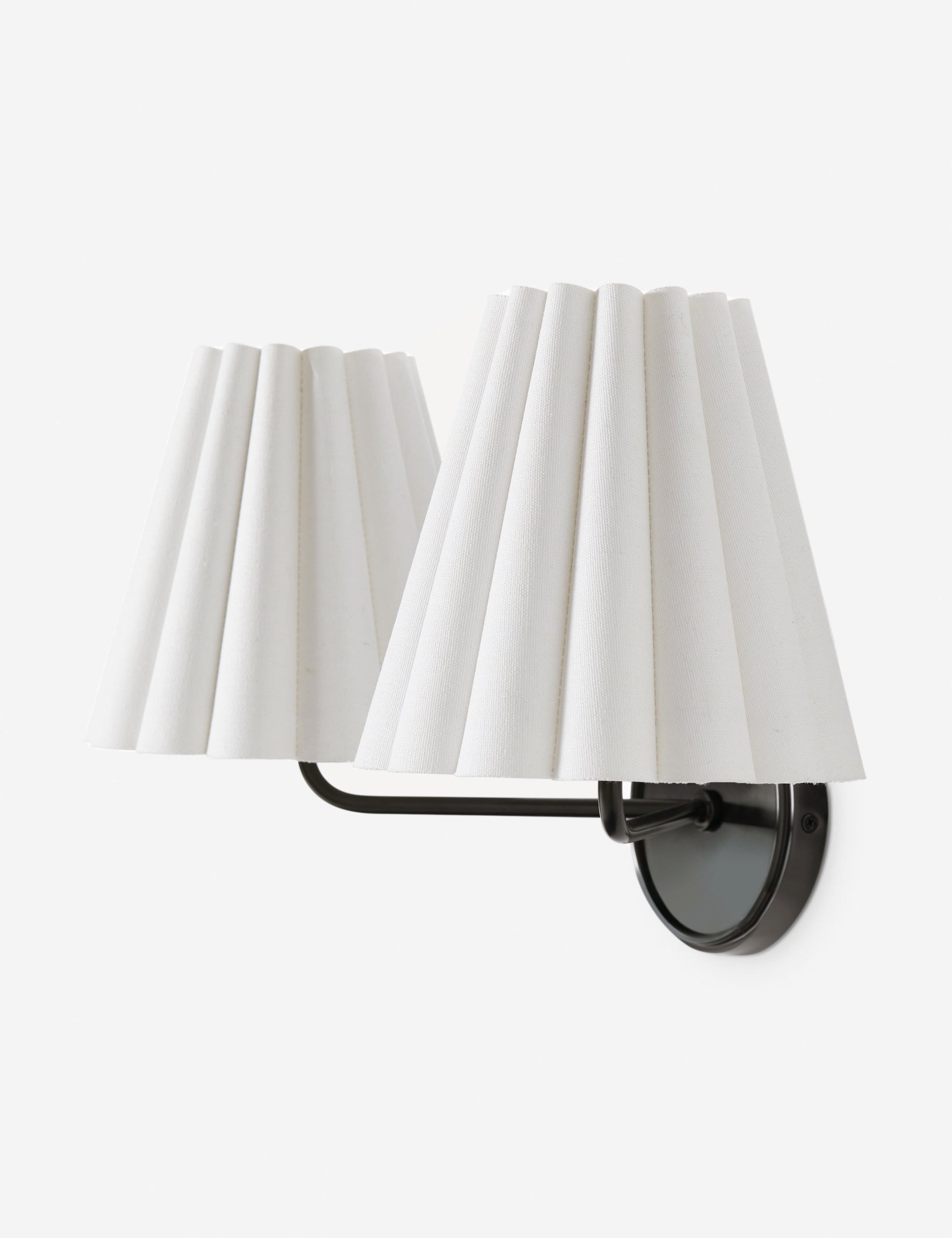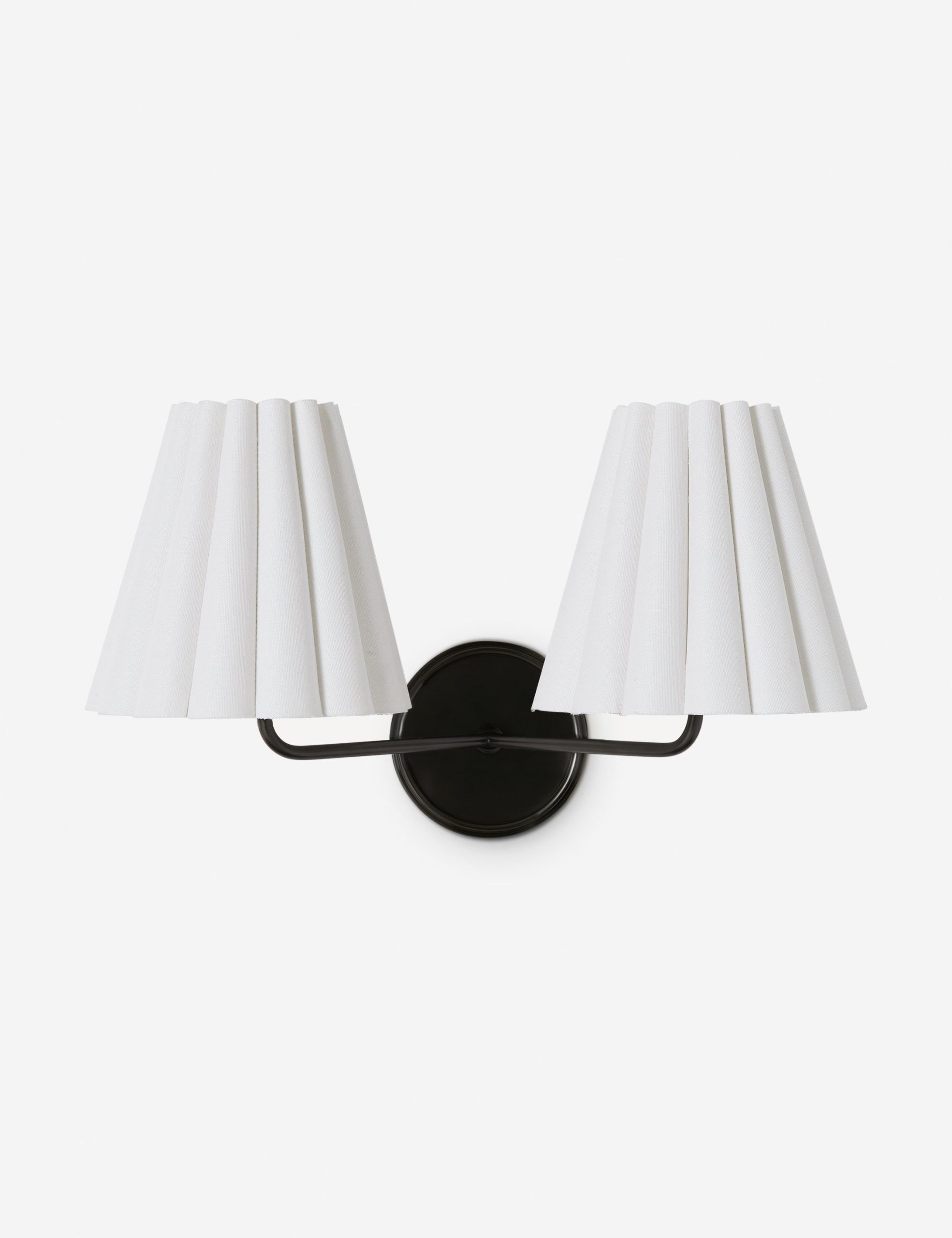 The cleanly ruffled shade of the Matthews sconce light brings a modern touch to a classic design. This double sconce works perfectly in pairs or as a standout feature for transitional decor.