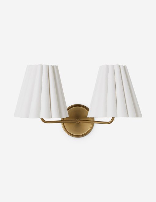 The cleanly ruffled shade of the Matthews sconce light brings a modern touch to a classic design. This double sconce works perfectly in pairs or as a standout feature for transitional decor.