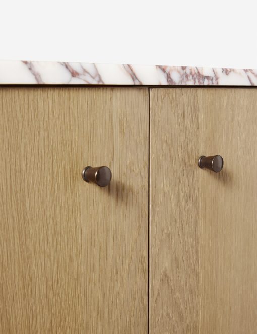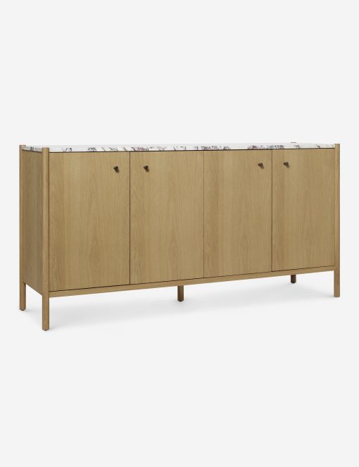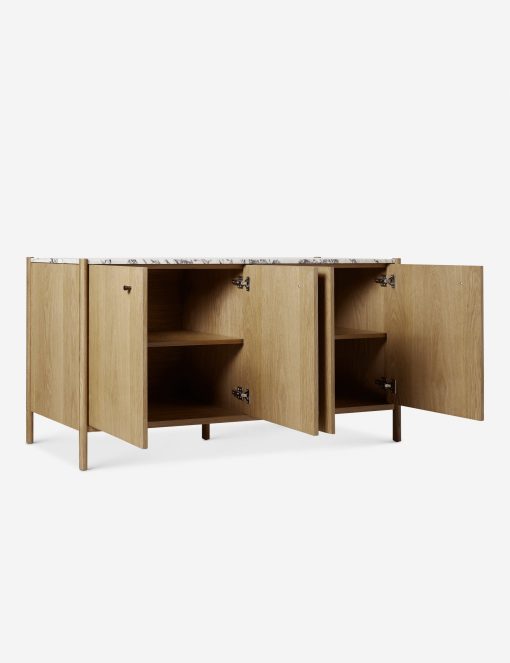 Our Philana sideboard brings a touch of polish to any bedroom edit. A honey finish highlights the natural grain warmth of the frame, grounding the luxe marble top with organic appeal. With storage space for dishes, linens, and more, this sideboard cabinet offers a modern look with timeless appeal.