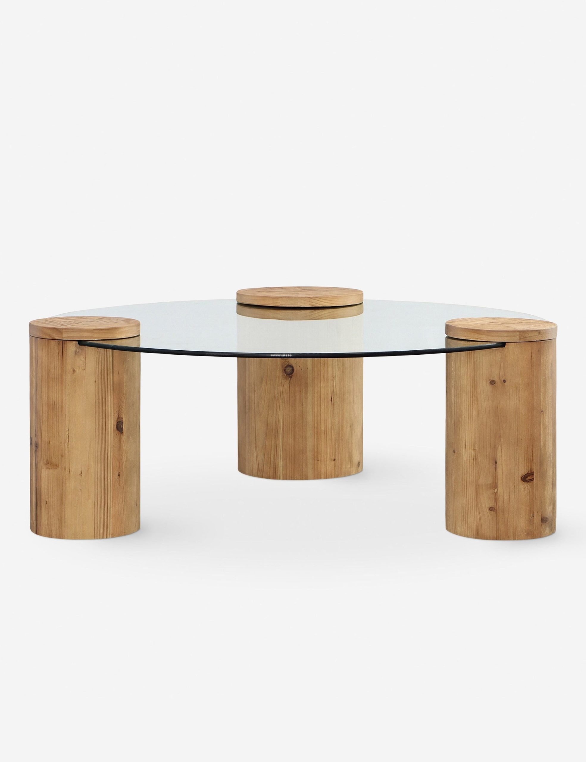 The Wilmot coffee table offers beauty in balance. The mixed-material design pairs thick legs cut from reclaimed pine with a clear glass top set for sleek appeal. We love this round coffee table for a modern space grounded by organic touches.