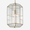The Absil pendant features a clean, mid-century style inspired by the architecture of Frank Lloyd Wright. Its brass frame features an artful arrangement of varied glass panels, diffusing the light and creating a striking profile overhead. This pendant is perfectly sized to elevate an entryway or hall.