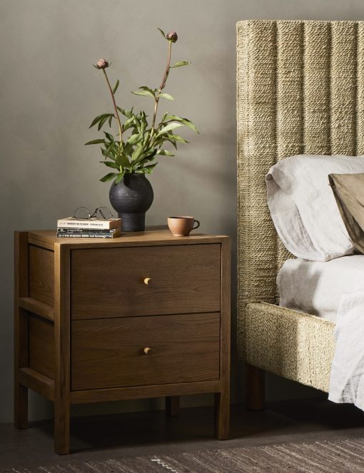 With its exposed framework and minimalist lines, this nightstand offers a fresh take on mid-century styling. The streamlined casing and understated hardware fashion a modern nightstand with a natural grain touch at your bedside.