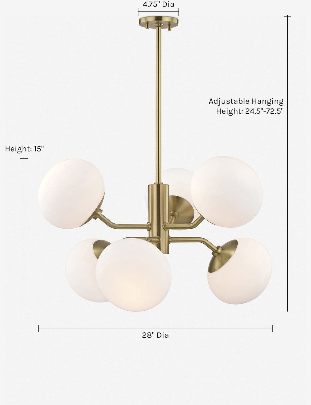 Soft angles and frosted glass make this chandelier the perfect transitional piece for contemporary spaces. We love the golden hardware and trendy globe design.