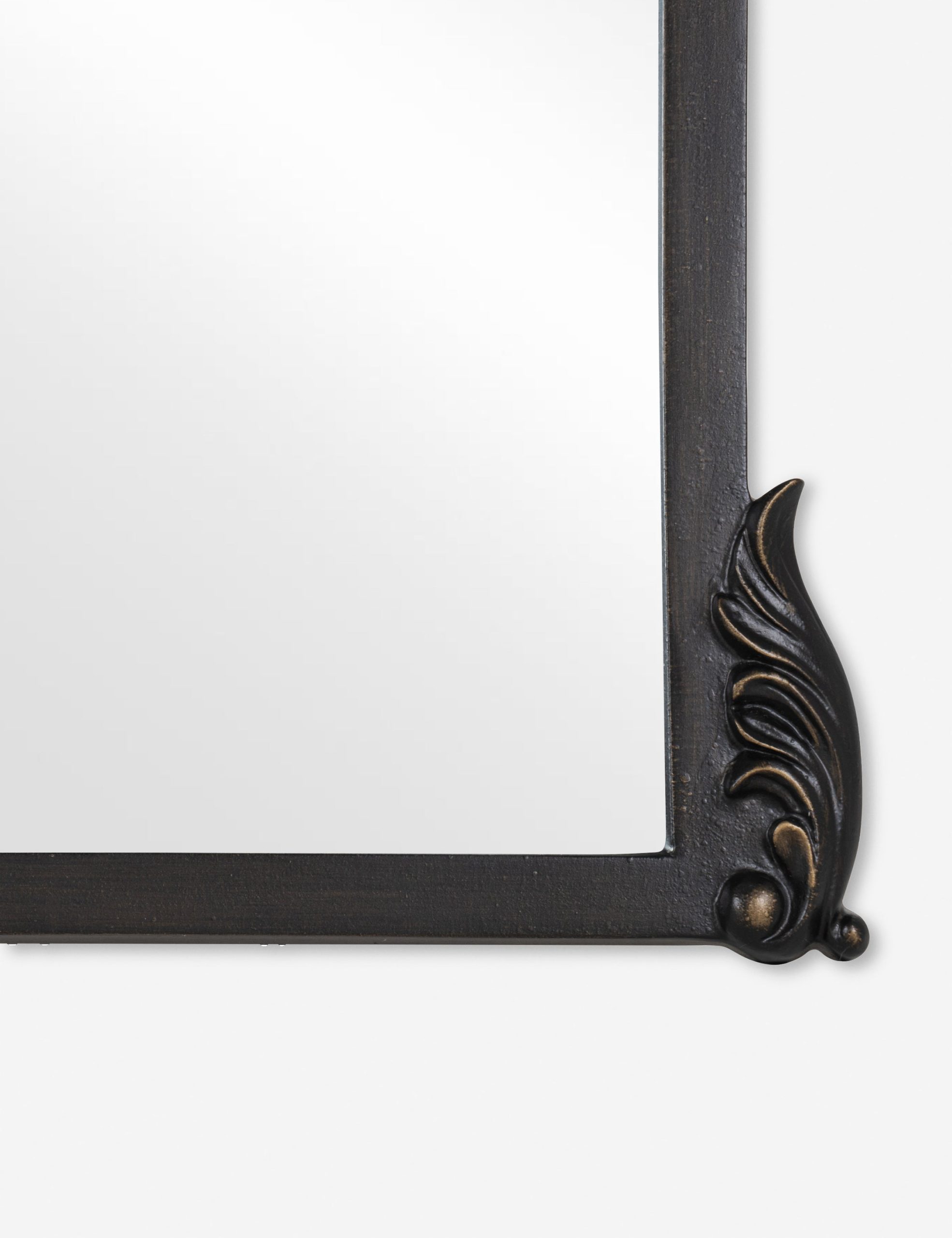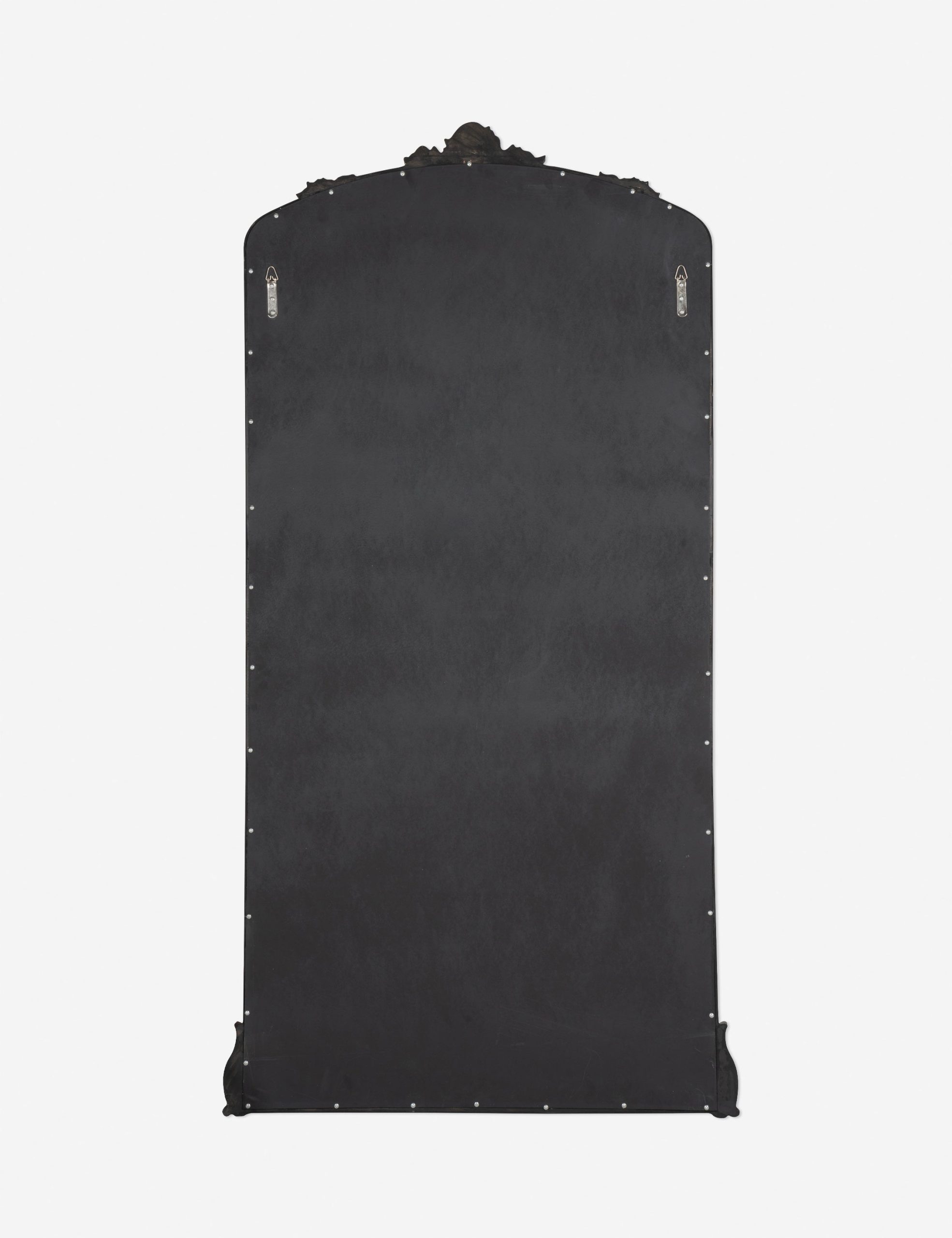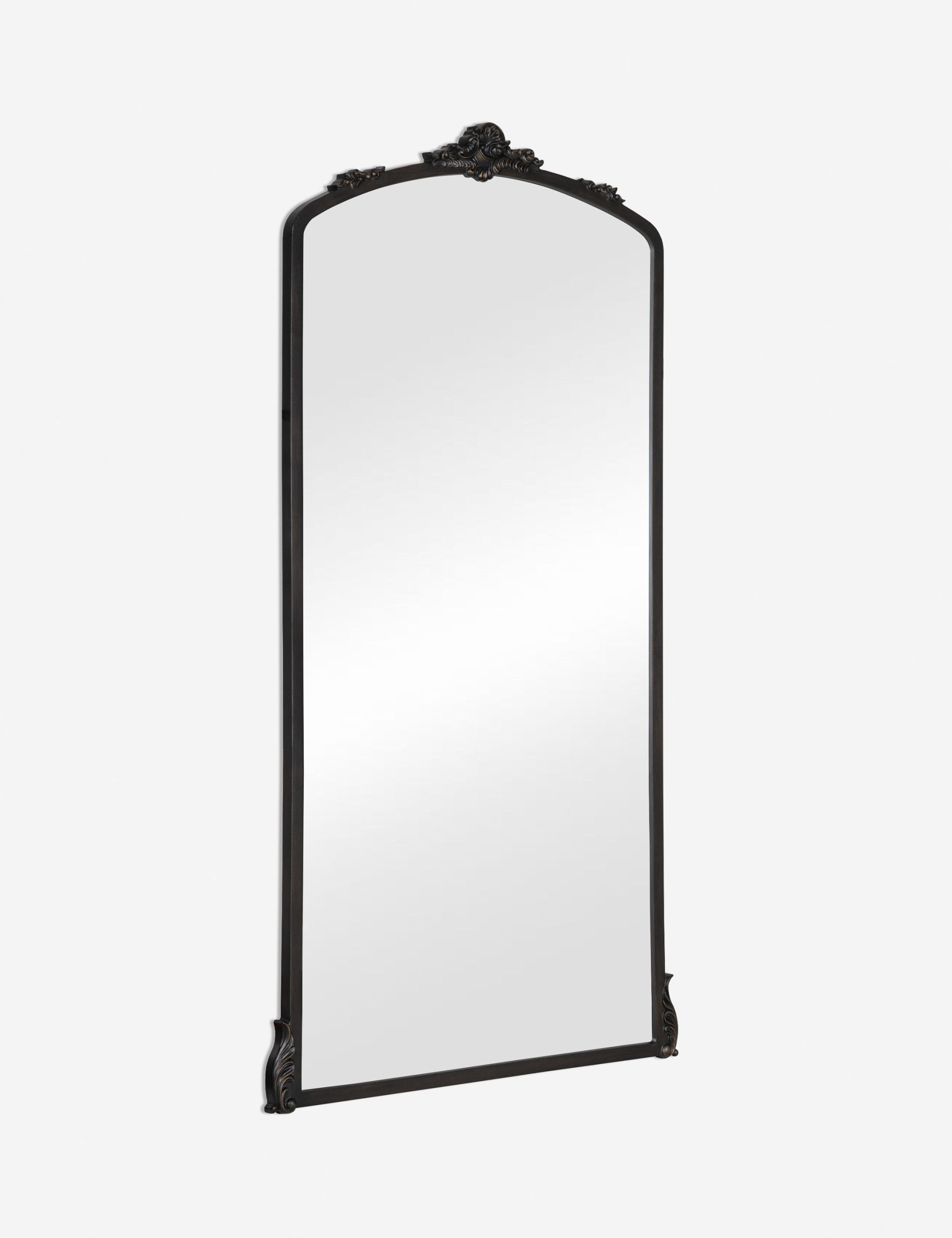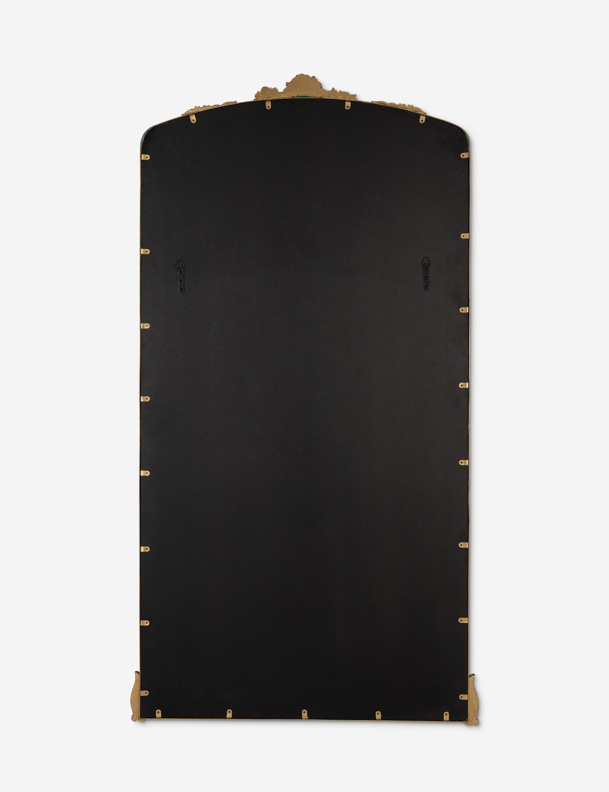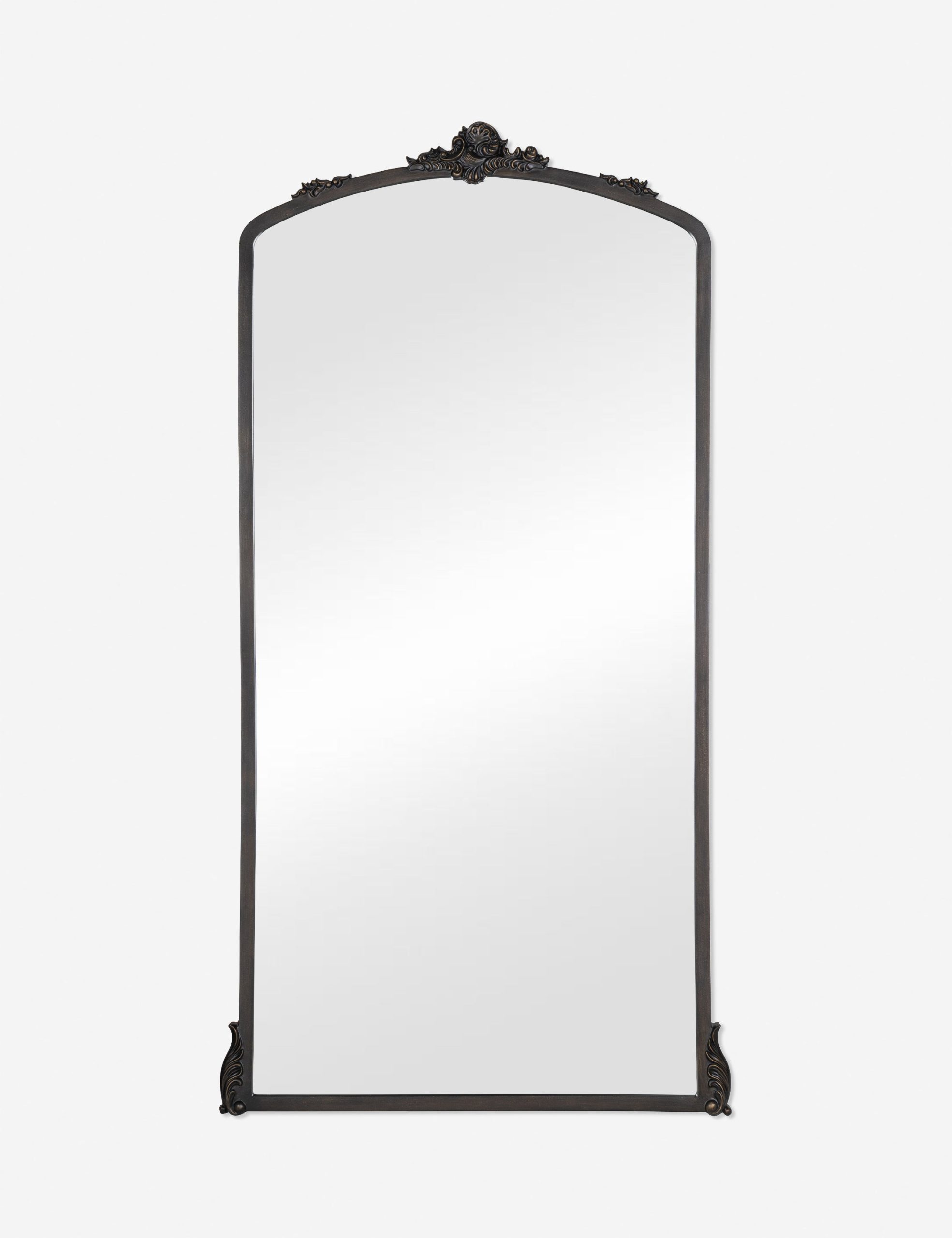 Looking for some glamour in your edit? This ornate floor mirror brings a polished statement to any room. The mirror’s arched frame is embellished with scrolling at the top and corners, setting off a traditional look with a touch of opulence.