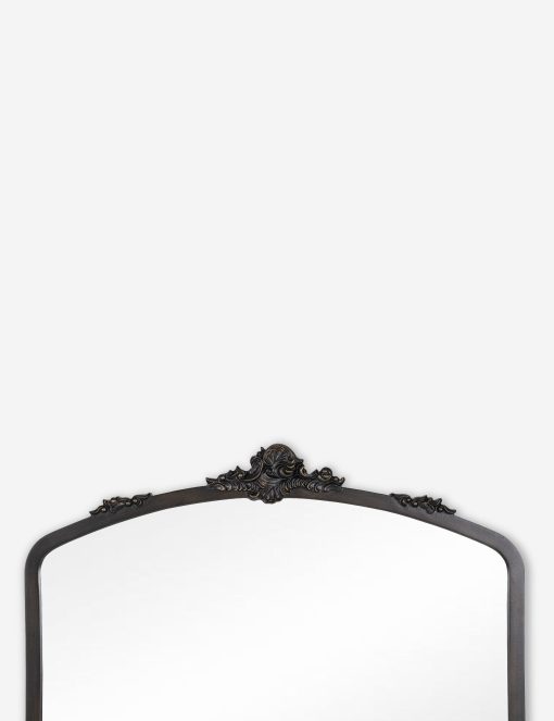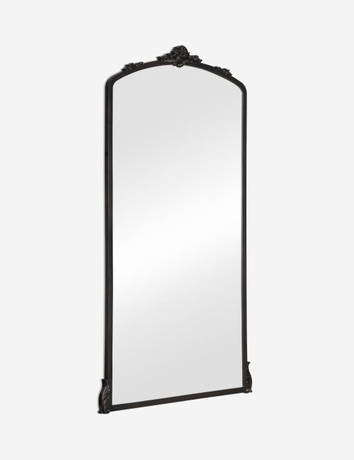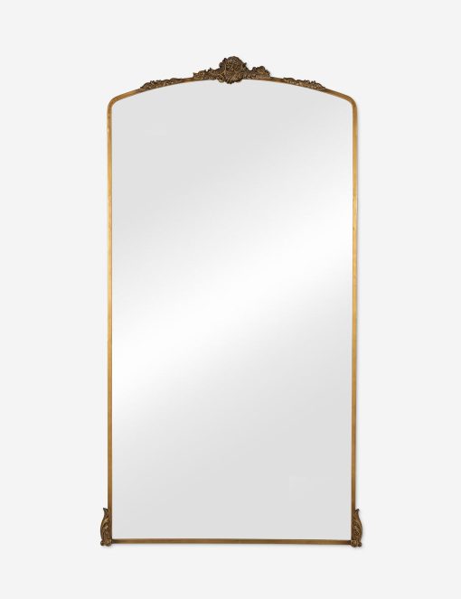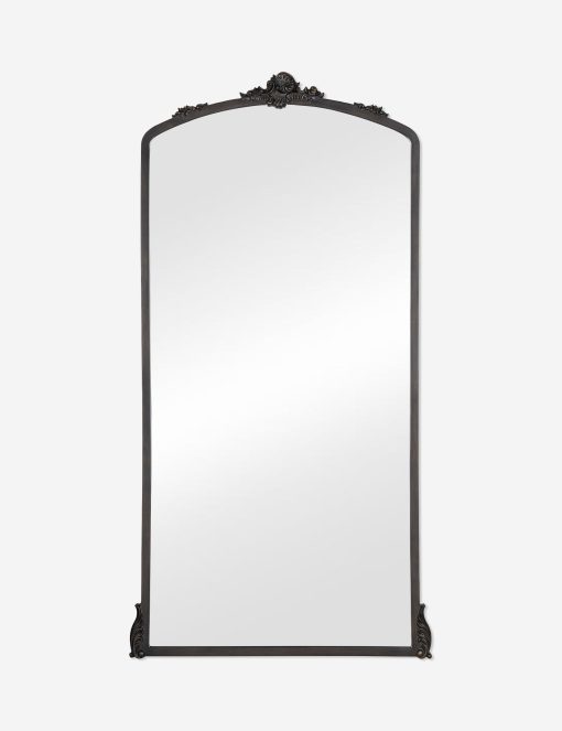 Looking for some glamour in your edit? This ornate floor mirror brings a polished statement to any room. The mirror’s arched frame is embellished with scrolling at the top and corners, setting off a traditional look with a touch of opulence.
