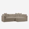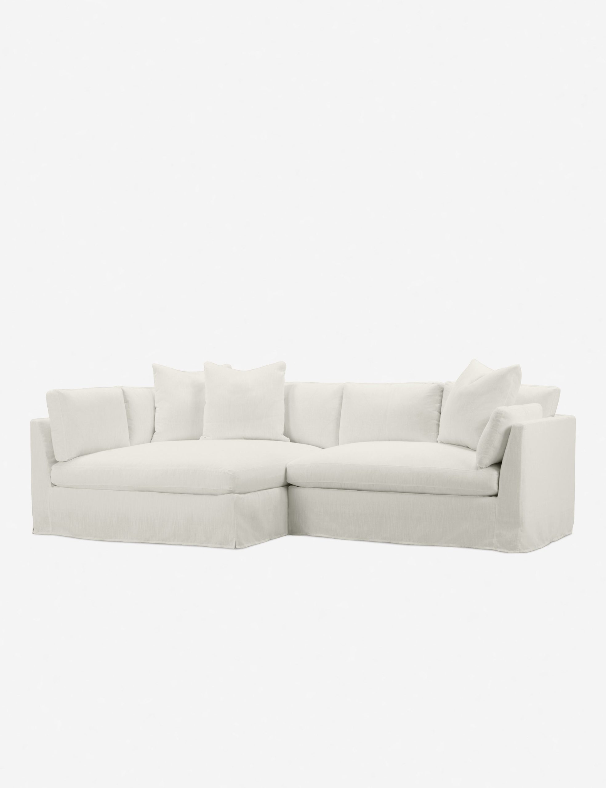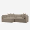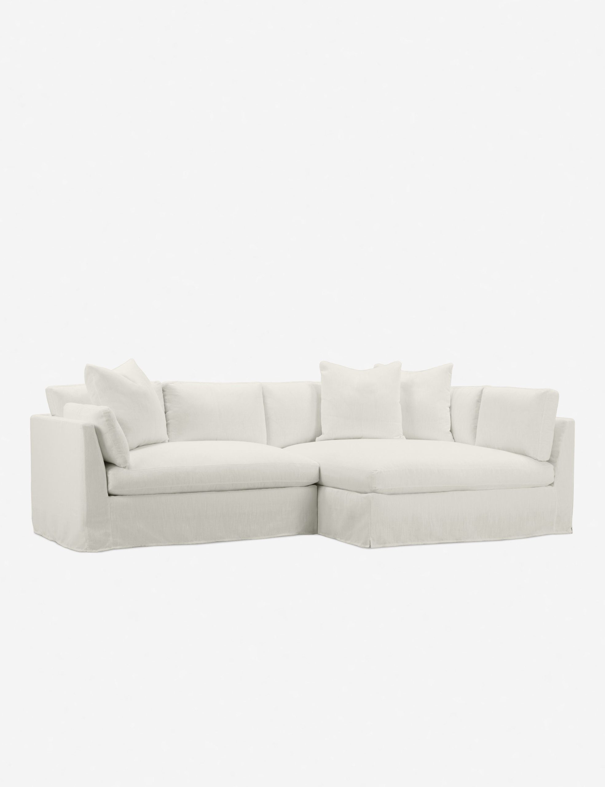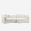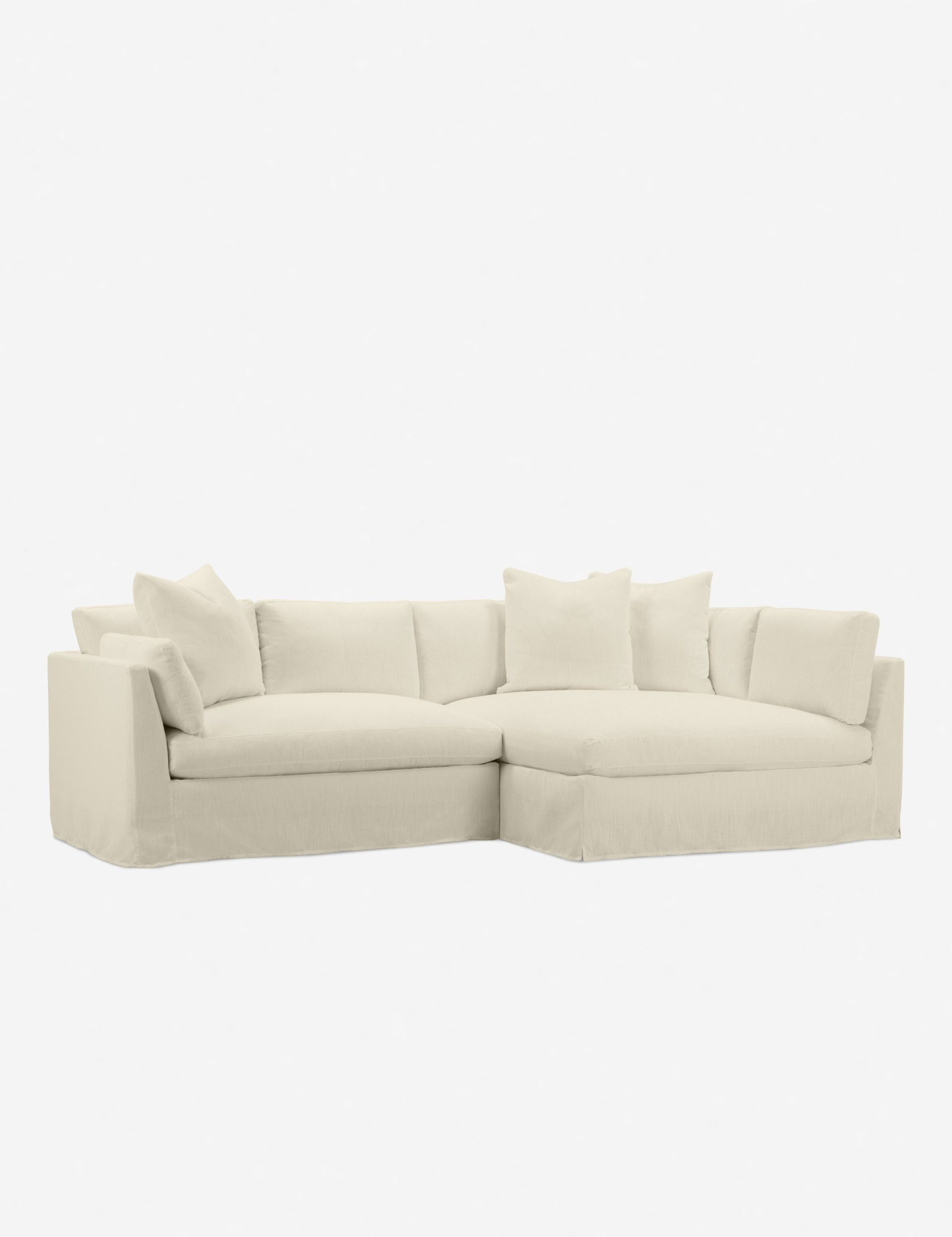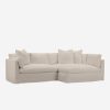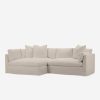 With its shelter-style frame, plush bench seat, and extra loose back cushions, this sectional sofa is tailor-made for comfort. A machine-washable slipcover is family-friendly, lending you some more peace of mind. This chaise sectional’s outsized presence makes it ideal for layering textures and materiality.