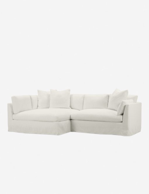 With its shelter-style frame, plush bench seat, and extra loose back cushions, this sectional sofa is tailor-made for comfort. A machine-washable slipcover is family-friendly, lending you some more peace of mind. This chaise sectional’s outsized presence makes it ideal for layering textures and materiality.