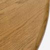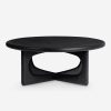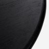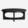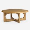 The Hesh coffee table pairs soft lines with the natural grain beauty of oak. Carved cutouts on the legs bring a sculptural quality to the design—offering an airy look with a sturdy bearing. This round coffee table is an ideal anchor piece for a modern lounge grounded in natural materials.