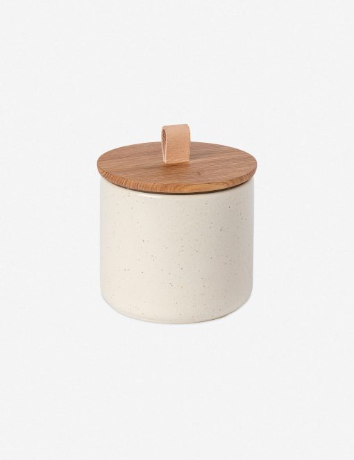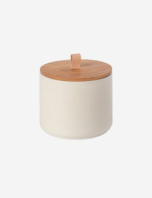 From Casafina, the Pacifica canister features a clean design marked by a refined balance and finish, lightly speckled for a distinctly modern look. An oak wood top adds a natural touch for easy storage with elevated appeal. Mix and match this container with the Pacifica dinnerware collection for a tailored look from your kitchen to your dining room.