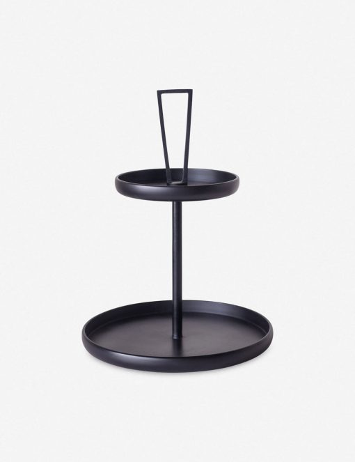 Designed for versatile appeal, this tiered tray offers an elevating touch for storage and display. Its sleek black lines and stacked platforms create the perfect place to display your favorite decor or keep everyday essentials handy from the powder room to your kitchen.