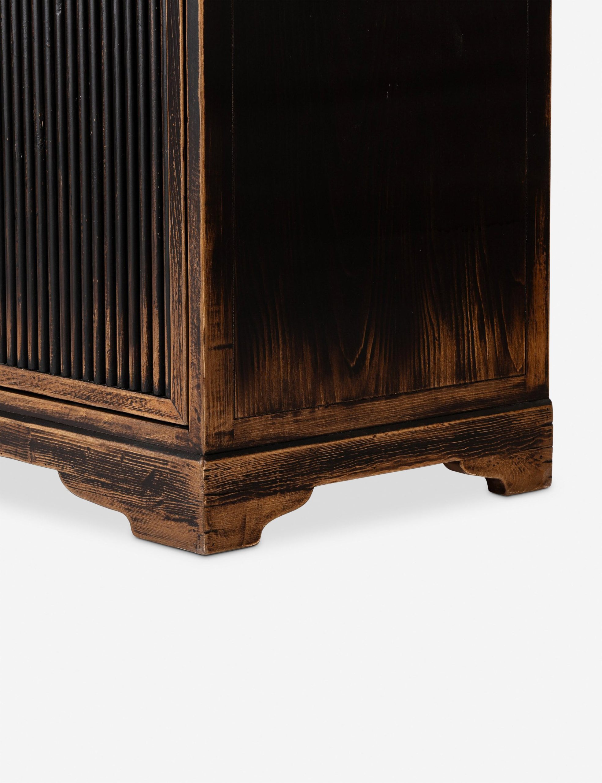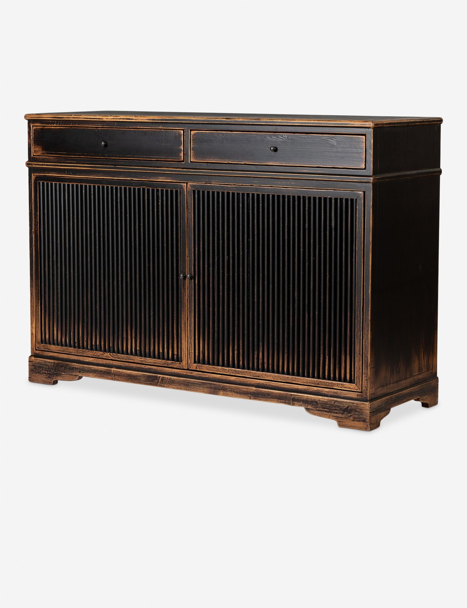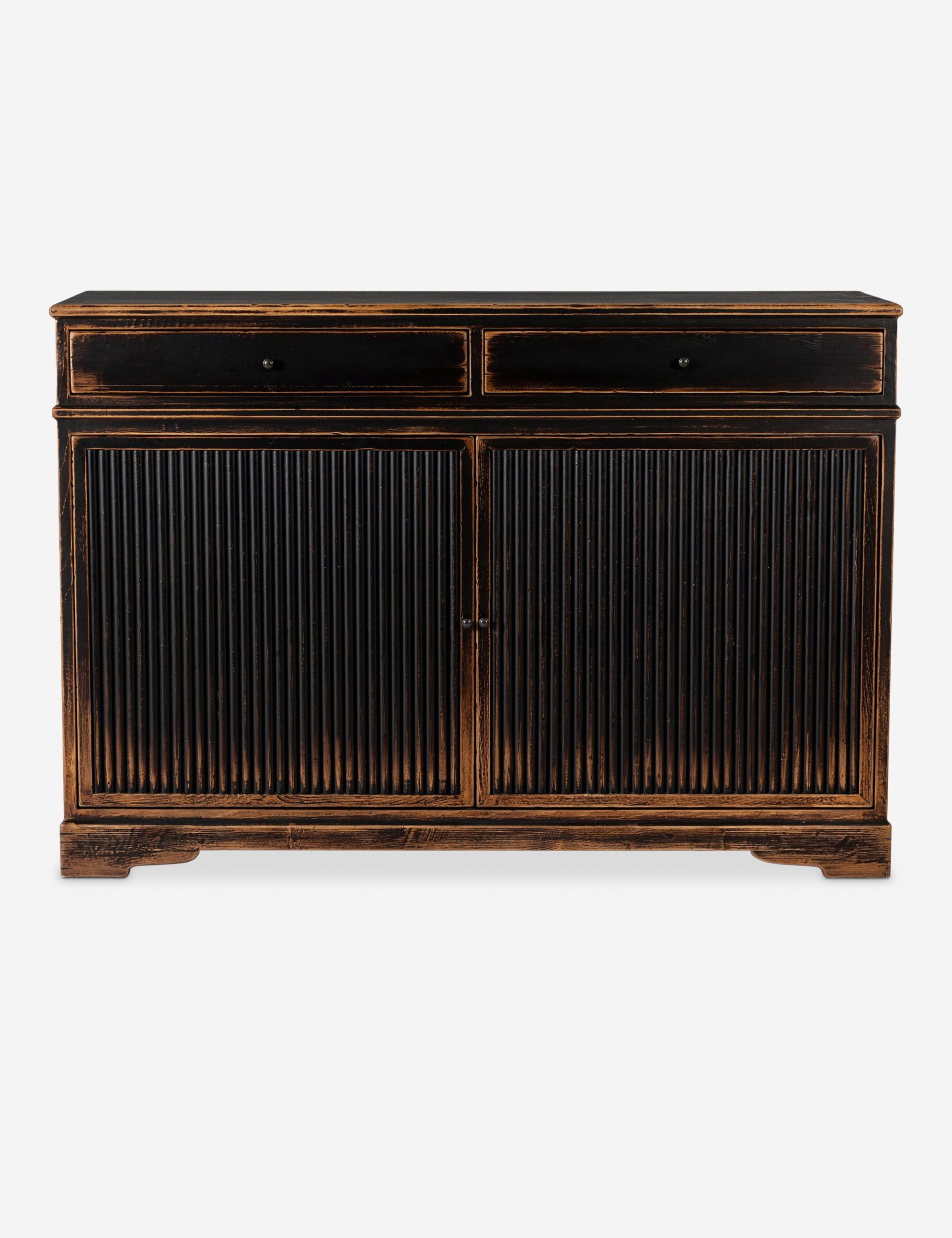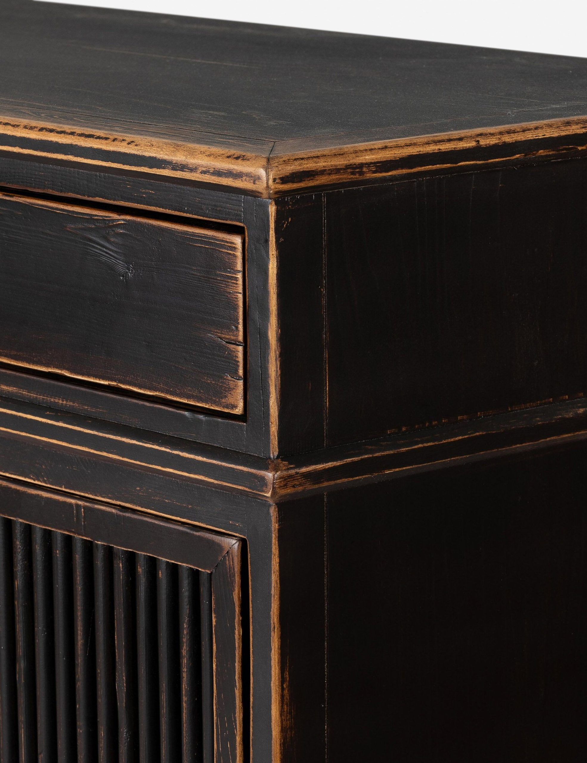 Four Hands brings their exceptional craftsmanship to a timeless collection rooted in Amber Lewis’ perennial California style. With inspiration from 18th-century French design, the Turner cabinet offers a seasoned feel with dramatic reeding and a worn black finish. The wood case features two drawers and adjustable interior shelving, bringing essential storage and rich character to any room. This piece also features rear cutouts for cord management.