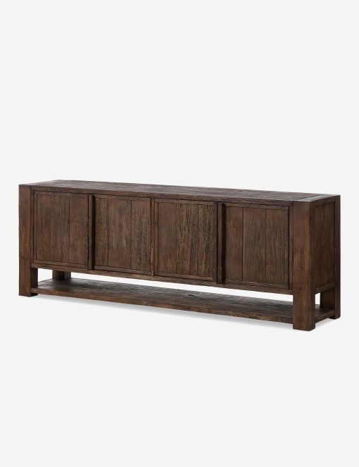 The Baldwin sideboard’s rough-hewn construction offers a stately profile. Two spacious drawers provide interior storage, while a wide top offers plenty of space for service or decor. We love the wood’s rich organic character.