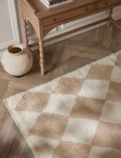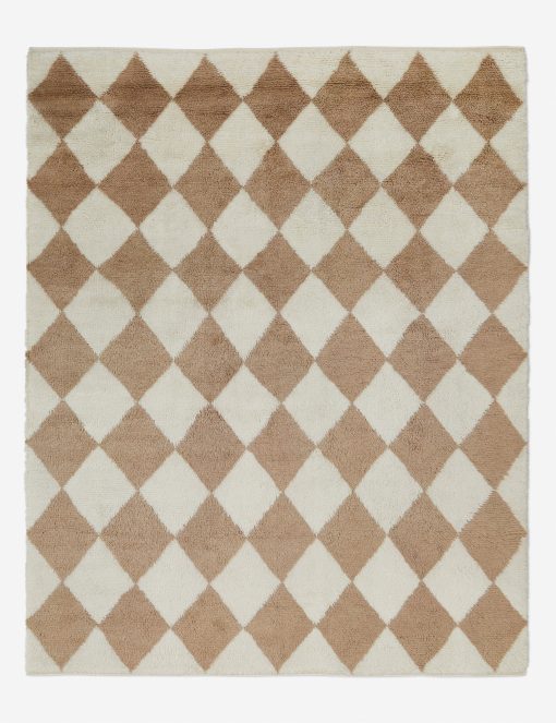With its bold diamond pattern, this Moroccan shag rug layers your look for chic comfort from the ground up. The thick wool pile offers a naturally plush touch underfoot, while its intricate hand-knotted construction provides a durable foundation for livable style. This eye-catching area rug is set for immediate impact with lasting appeal.