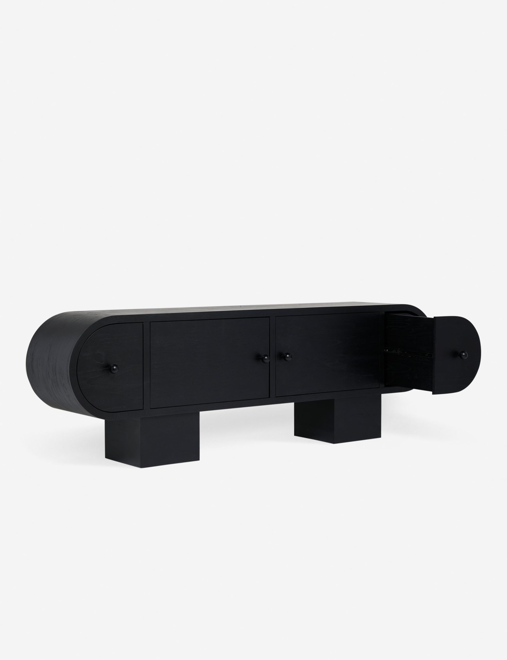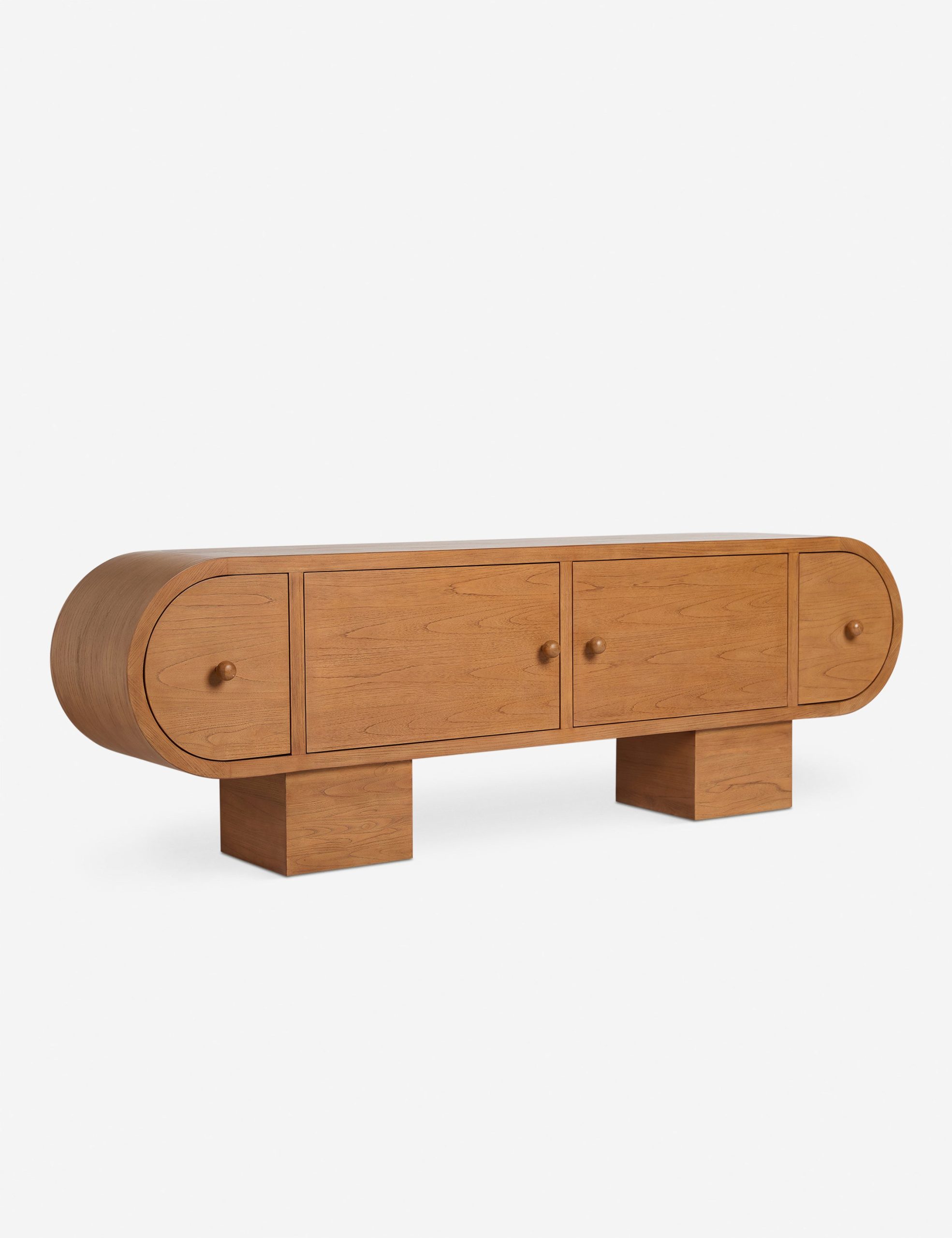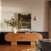 The Laughlin sideboard brings a fresh touch of sophistication to your dining room or lounge. The pill-shaped silhouette offers retro inspiration with soft close drawers for a strikingly modern design that can serve as a sideboard or media console. This piece is from our exclusive Sarah Sherman Samuel collaboration and features all the trademarks of her warm, edited style.